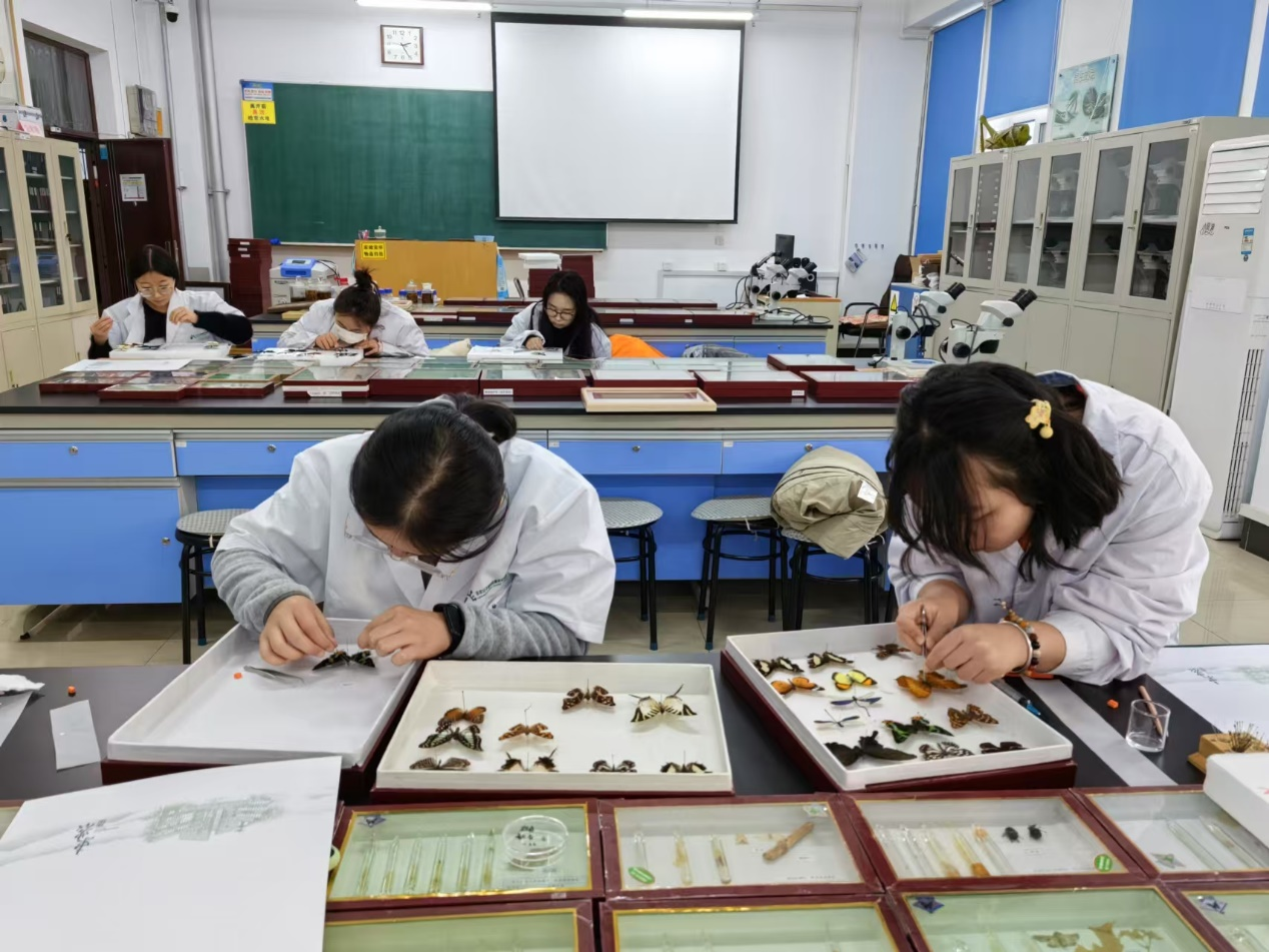 活动之处,王晓云为同学们带来蝴蝶科普讲座,从不同角度讲解蝴蝶,为接下来的创作打好根基。在实操环节,学生们展开自己的奇思妙想,大胆创作。期间,王晓云认真指导,传授技巧,桌子上的蝴蝶标本在同学的手中被赋予了新的生命。