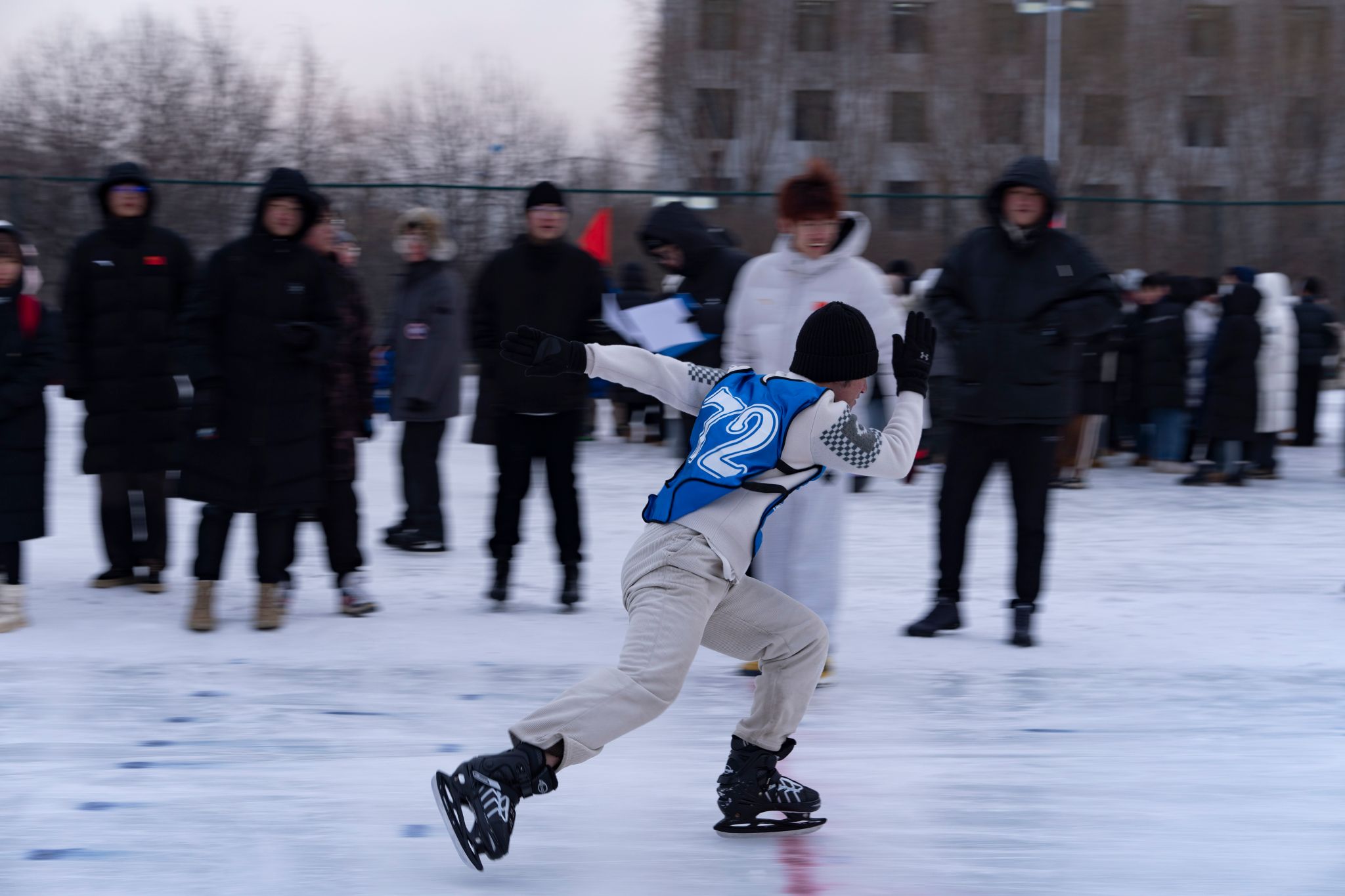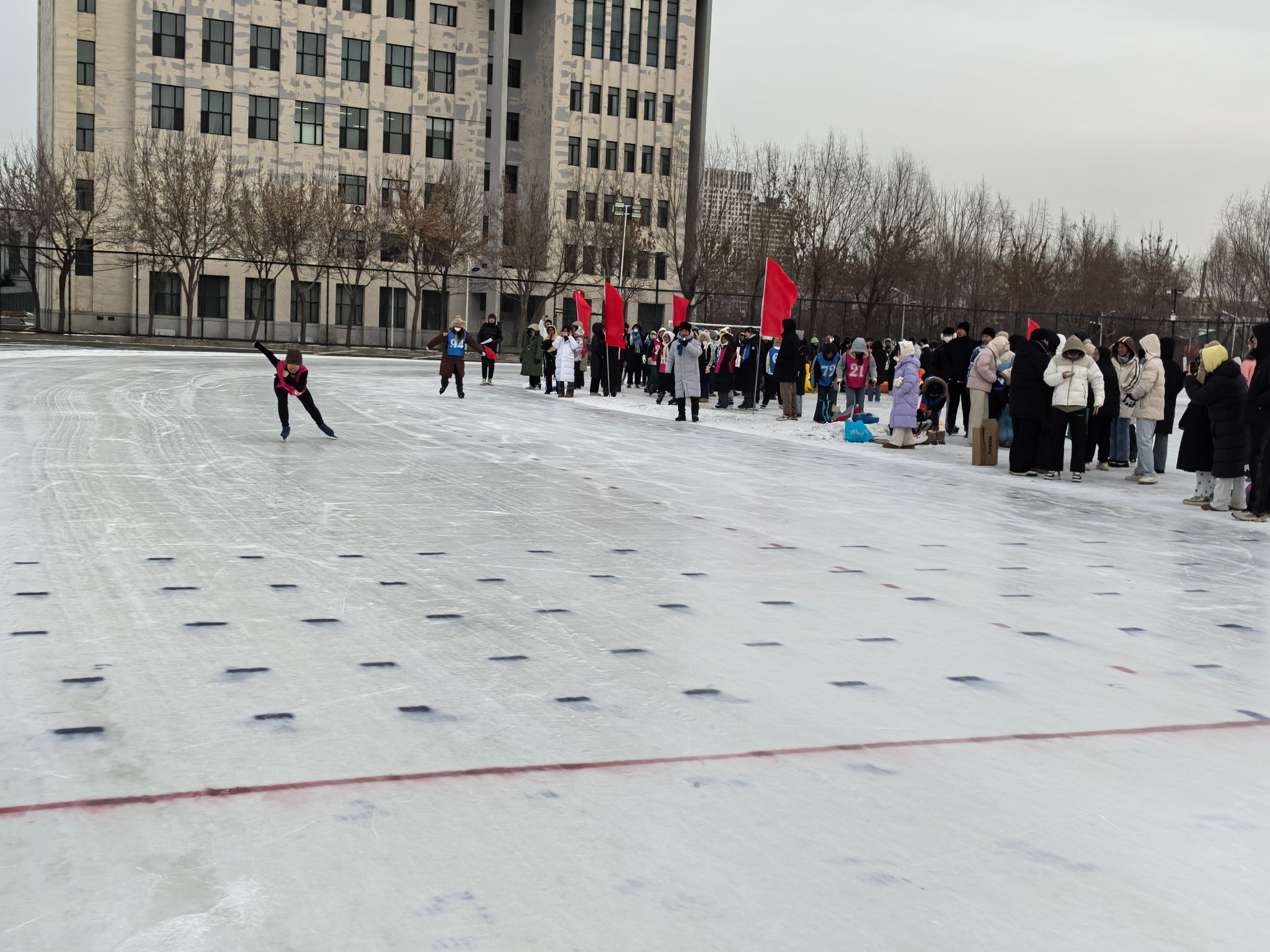 本次活动由体育教研部、校团委承办,设立竞技项目和趣味项目两大类,包括速度滑冰单人项目、3人集体滑、四人混合接力、绕障碍滑行接力、毛毛虫竞速、雪圈竞速、抽冰嘎等项目,活动共吸引三百余名运动员参与。