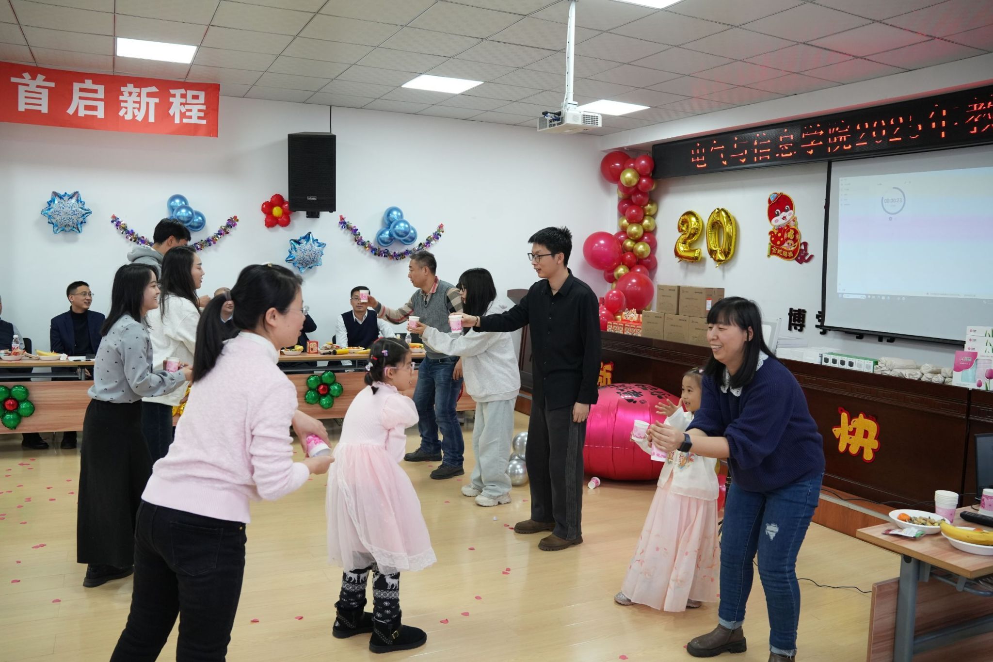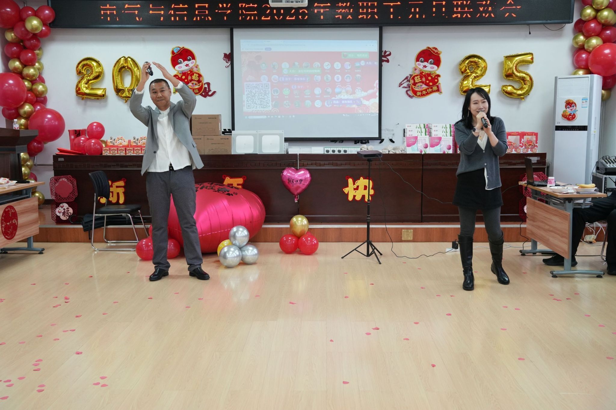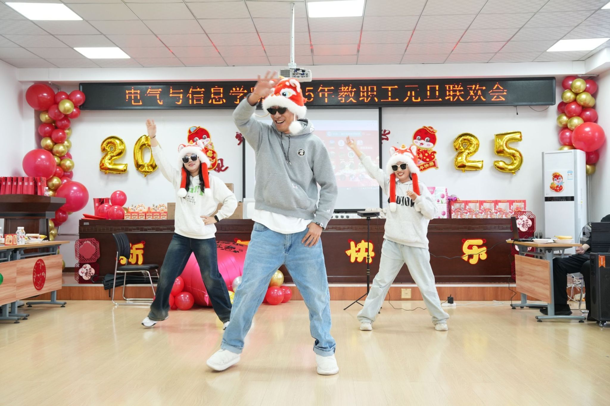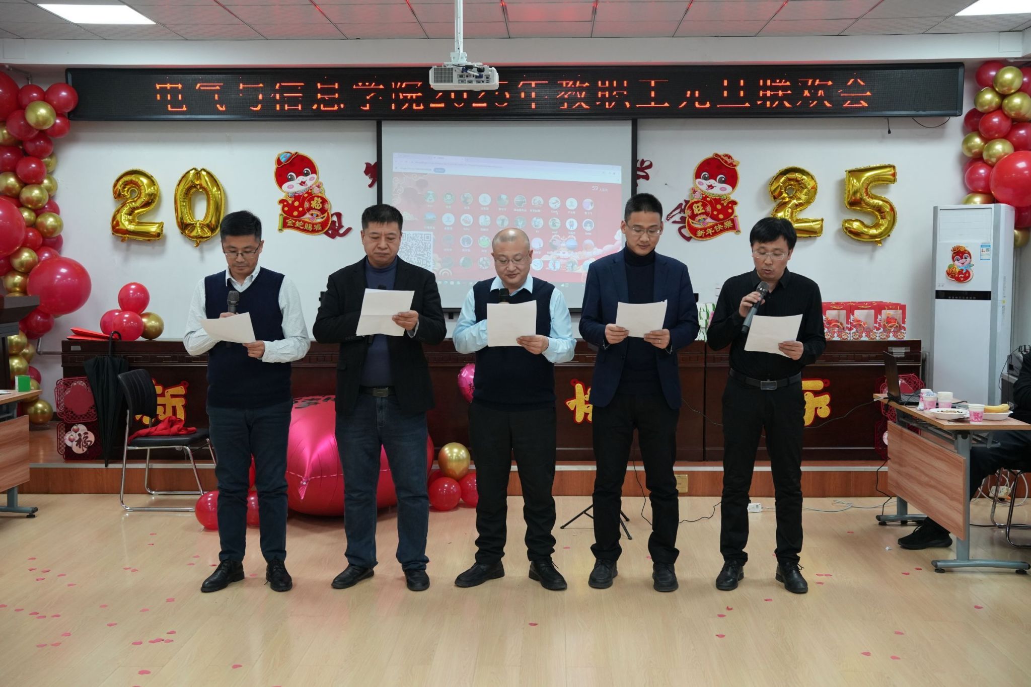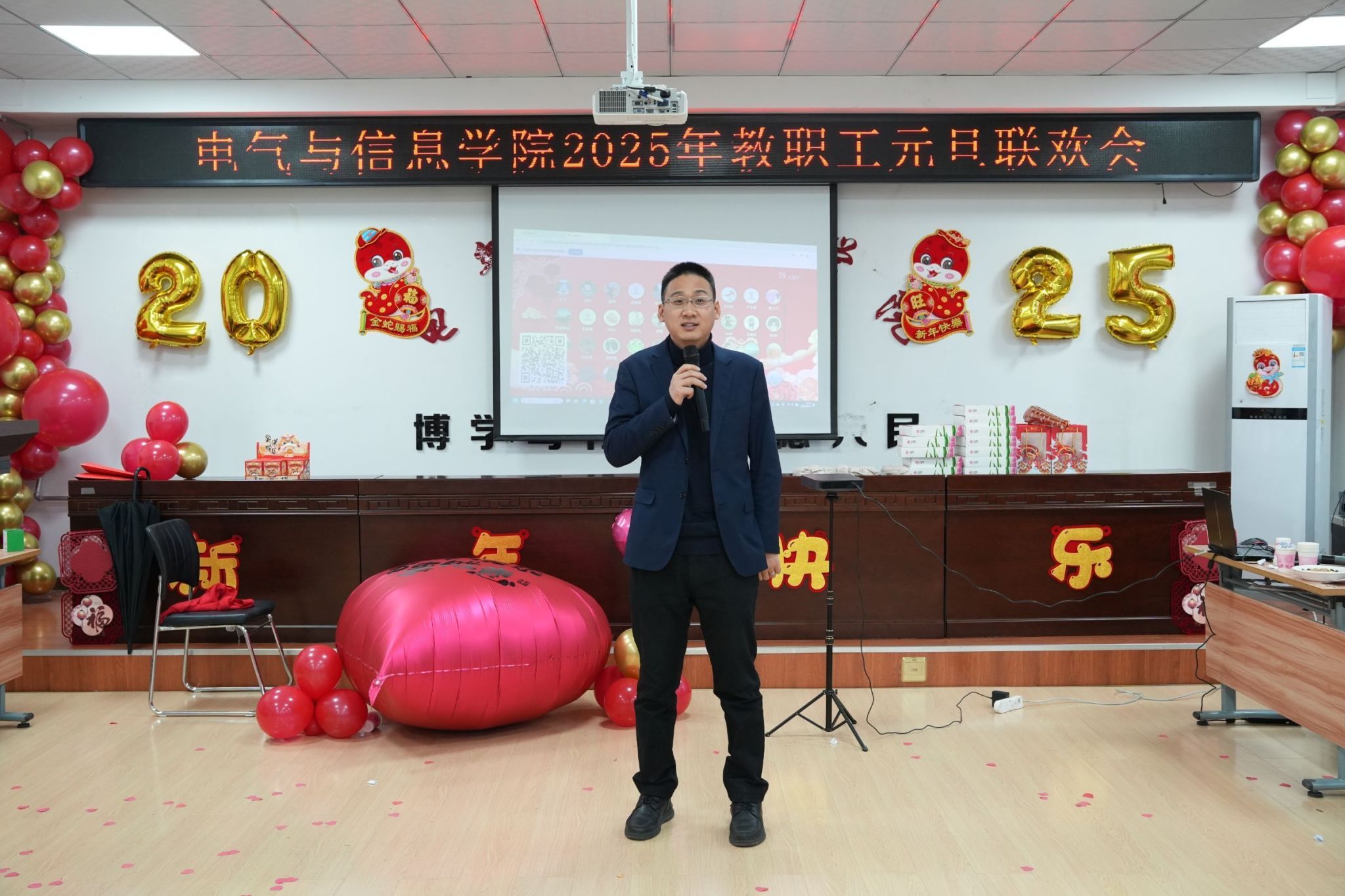 凝心聚力谋发展,团结奋进谱新篇。为庆祝2025年元旦佳节,营造欢乐、祥和的节日氛围,充分展现全院师生团结奋进、昂扬向上的精神风貌。12月31日下午,电气与信息学院举办2025年教职工元旦联欢会。学院领导班子成员及全院教职工欢聚一堂,活动由辅导员乔傲涵、牛牧原主持。