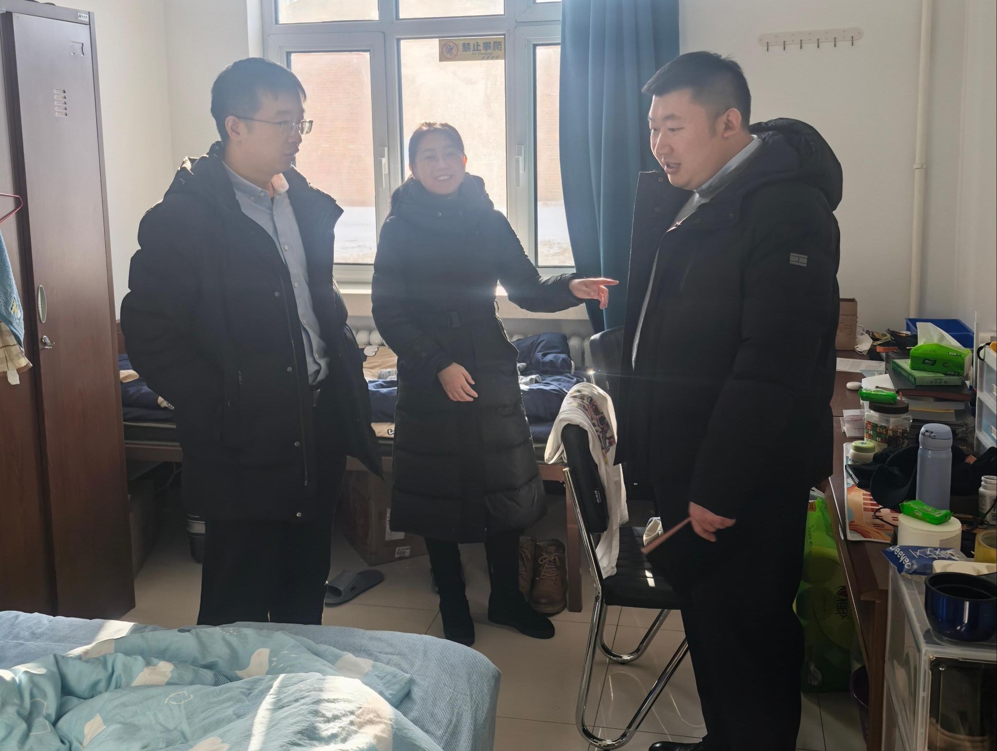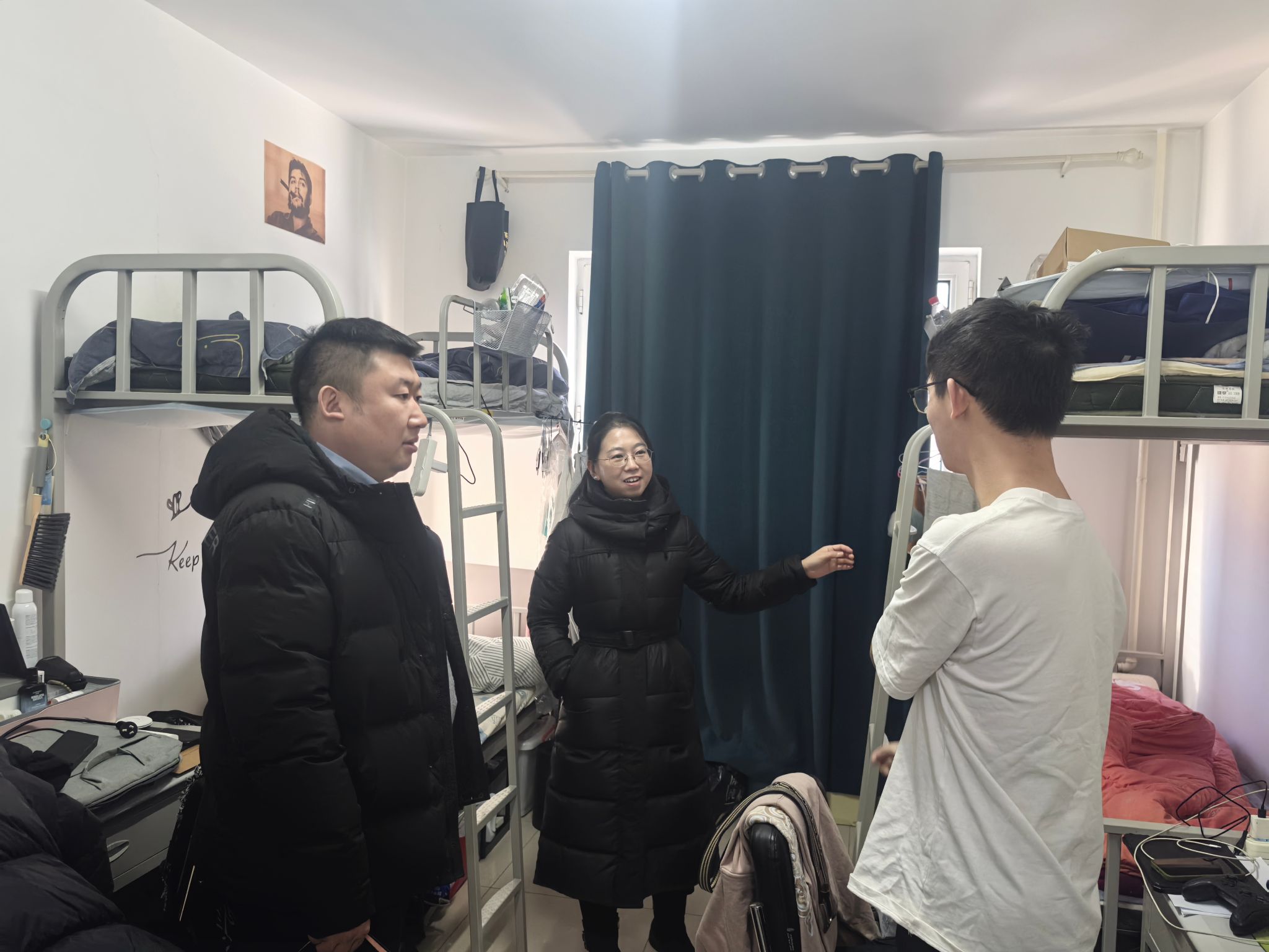 1月15日上午,学院院长李茉、党委副书记王国军、副院长李天霄、研究生辅导员康涛深入学生寝室进行走访检查,摸排了解留校研究生的科研进展、生活状态及留校计划,重点检查了宿舍的用电安全、消防安全及卫生状况。走访过程中,学院领导针对安全隐患问题现场提出整改意见,要求相关寝室立即整改;同时教育引导学生提高用电安全意识,认识到违规使用电器的危害,倡导学生保持干净整洁的寝室环境,养成良好的卫生习惯,以舒适温馨的寝室氛围为保障,积极投入到科研和个人发展中去。