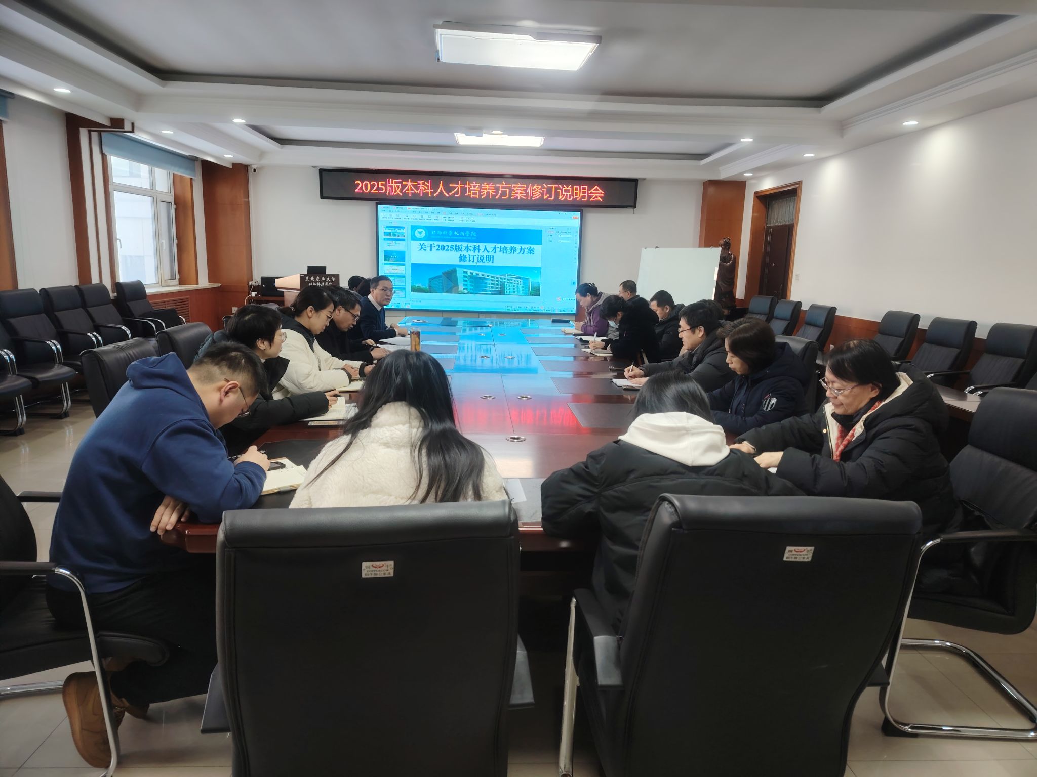 为准确把握未来行业人才需求,科学定位具有本专业特色的人才培养目标,强化东农特色,动物科学技术学院于1月17日在动科楼218会议室召开2025版本科人才培养方案修订说明会。学院全体领导班子成员、专业负责人、系主任、教学系主任、教研室主任、课程组负责人和教学秘书参会。会议由副院长张攀主持。