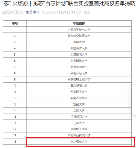 近日,龙芯中科技术股份有限公司公布了“LoongArch生态联合创新实验室——百芯计划”首批联合实验室建设名单,我校电气与信息学院成功入选,入选单位还包括中国科学技术大学、北京航空航天大学、中国海洋大学等在内的多所国内知名高校。