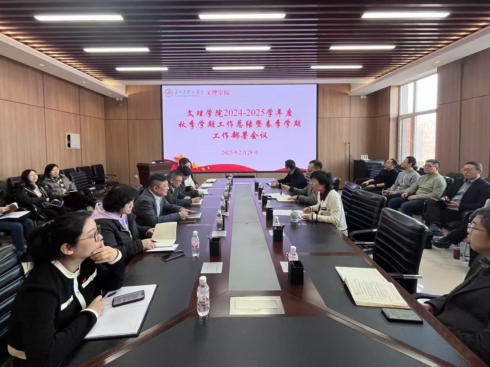 为全面总结上一学期工作成果与经验,科学谋划新学期发展蓝图,2月28日上午,文理学院于成栋楼926会议室召开2024-2025学年度秋季学期工作总结暨春季学期工作部署会议,学院领导班子成员、教师党支部书记、各系部主任及副主任、各实验中心主任及副主任参加会议。会议由院长付颖主持。