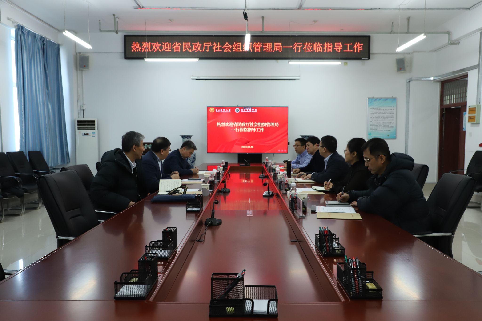 近日,黑龙江省民政厅社会组织管理局局长陈阵、一级调研员胡朝晖、二级调研员房培武一行到我校经济管理学院调研,经济管理学院院长余志刚,副院长王洋,黑龙江省高端智库首席专家、经济管理学院教授郭翔宇,应用经济学学科带头人庞金波等参加会议。