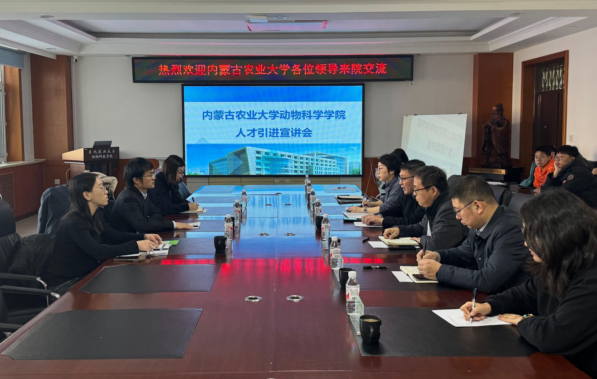 徐光君对内蒙古农业大学一行的到来表示欢迎,并就学院发展作了简要介绍。他表示,学院始终坚持以人才培养为核心,强化畜牧学科人才培养体系建设,积极支持其他高校来开展人才引进工作,并希望通过此次宣讲,进一步加强两校之间的合作与交流,共同构建校际资源共享、人才共用、互利共赢大格局,为服务国家重大战略需求和地方经济社会发展作出积极贡献。