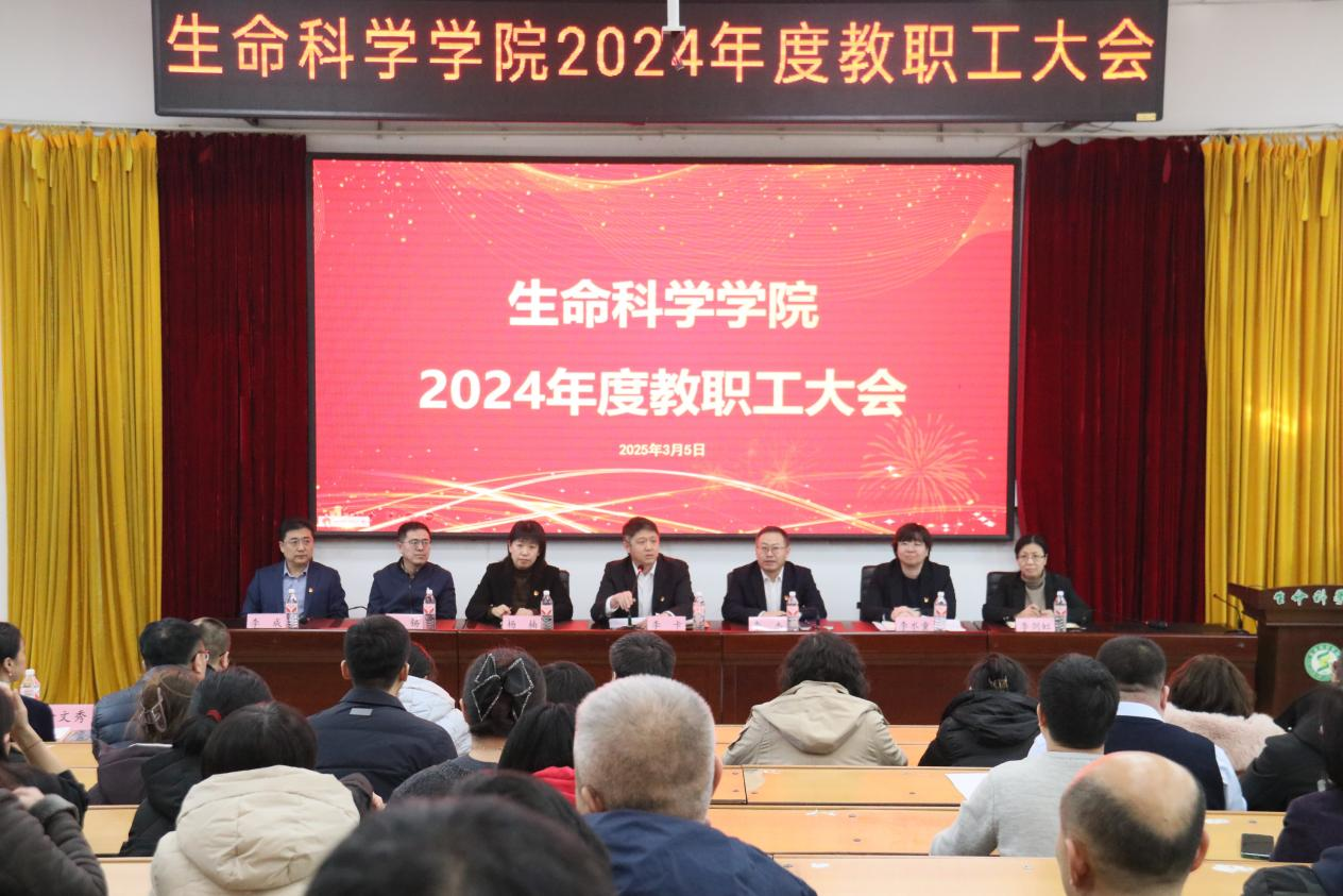3月5日下午,生命科学学院在实验七报告厅召开2024年度教职工大会。校工会副主席徐文秀出席大会,学院全体教职工参加会议,大会由学院党委书记李卡主持。