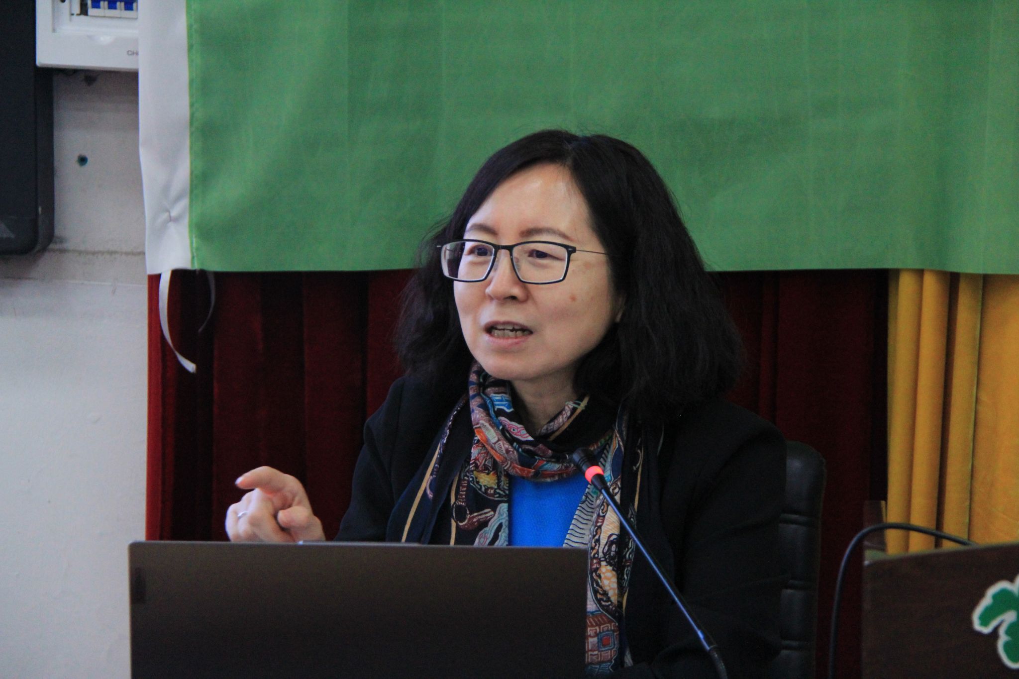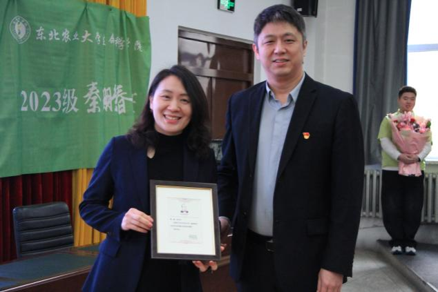 李卡代表学院向郝捷颁发纪念证书,学生代表向两位老师赠送鲜花。