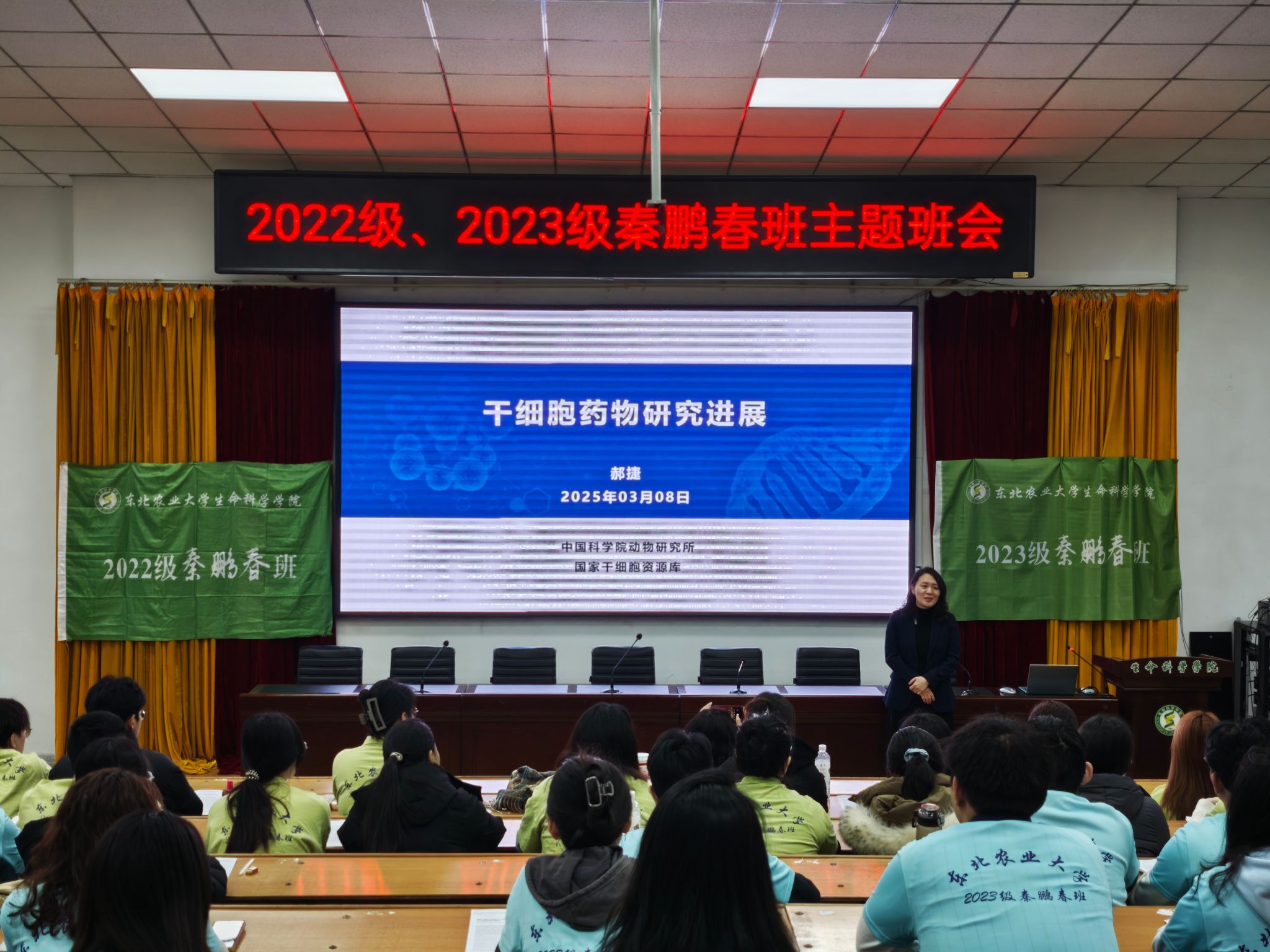 3月8日上午,生命科学学院在实验楼举行2025年“秦鹏春班”主题班会暨首场专家指导报告会。中国科学院动物研究所副所长、秦鹏春班校外班主任王红梅,中国科学院动物研究所研究员、国家干细胞资源库执行主任郝捷受邀担任主讲嘉宾。学院党委书记李卡,院长李杰,党委副书记李水童,副院长李剑虹,学院部分教师代表及“秦鹏春班”全体学生参加活动。