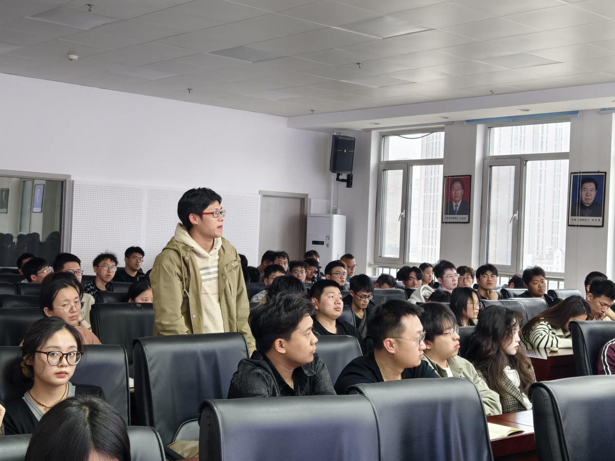 在交流互动环节中,与会师生积极踊跃进行提问,曹人靖对问题逐一进行解答。
