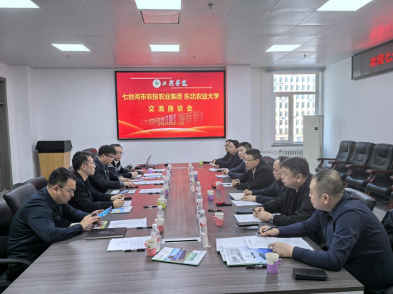 3月14日,七台河市农投农业集团党委书记、董事长郭鸿剑一行到东北农业大学开展调研交流。工程学院院长李岩、党委副书记孙涛、副院长王金峰、李龙海及相关领域科研人员参加调研座谈会。七台河市农投农业集团党委副书记、总经理吴怀山、副总经理刘桂亭、食品公司总经理王显龙、人力资源部部长王硕、食品公司副总经理张洲、黑龙江金骏机械制造有限公司总经理杨华、党委办公室副主任张兴利、人力专员罗犇等参加调研。座谈会由王金峰主持。