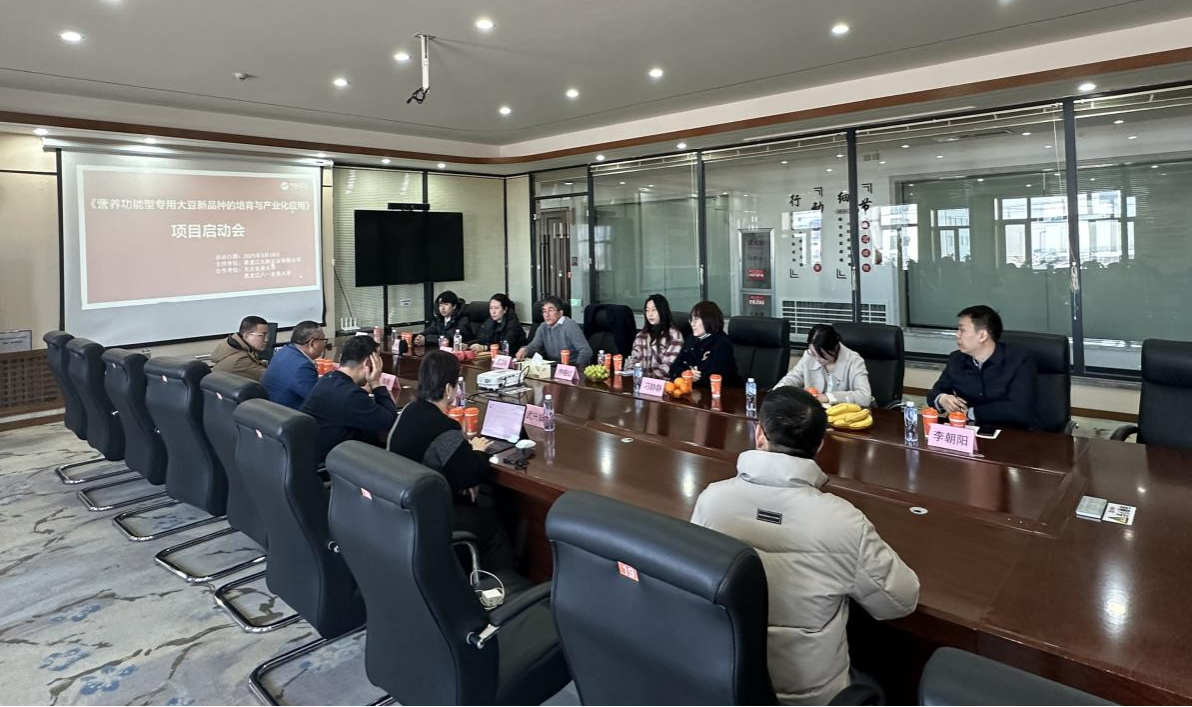 3月18日,由黑龙江九阳豆业有限公司与东北农业大学共同牵头,黑龙江八一农垦大学协同参与的省重点研发计划(重大项目)“营养功能型专用大豆新品种的培育与产业化应用”启动会,在杜尔伯特蒙古族自治县黑龙江九阳豆业有限公司召开。来自杭州九阳豆业有限公司、黑龙江九阳豆业有限公司的企业代表与东北农业大学、黑龙江八一农垦大学的相关领域专家共10余人参加会议。会议由项目企业负责人张修军主持。