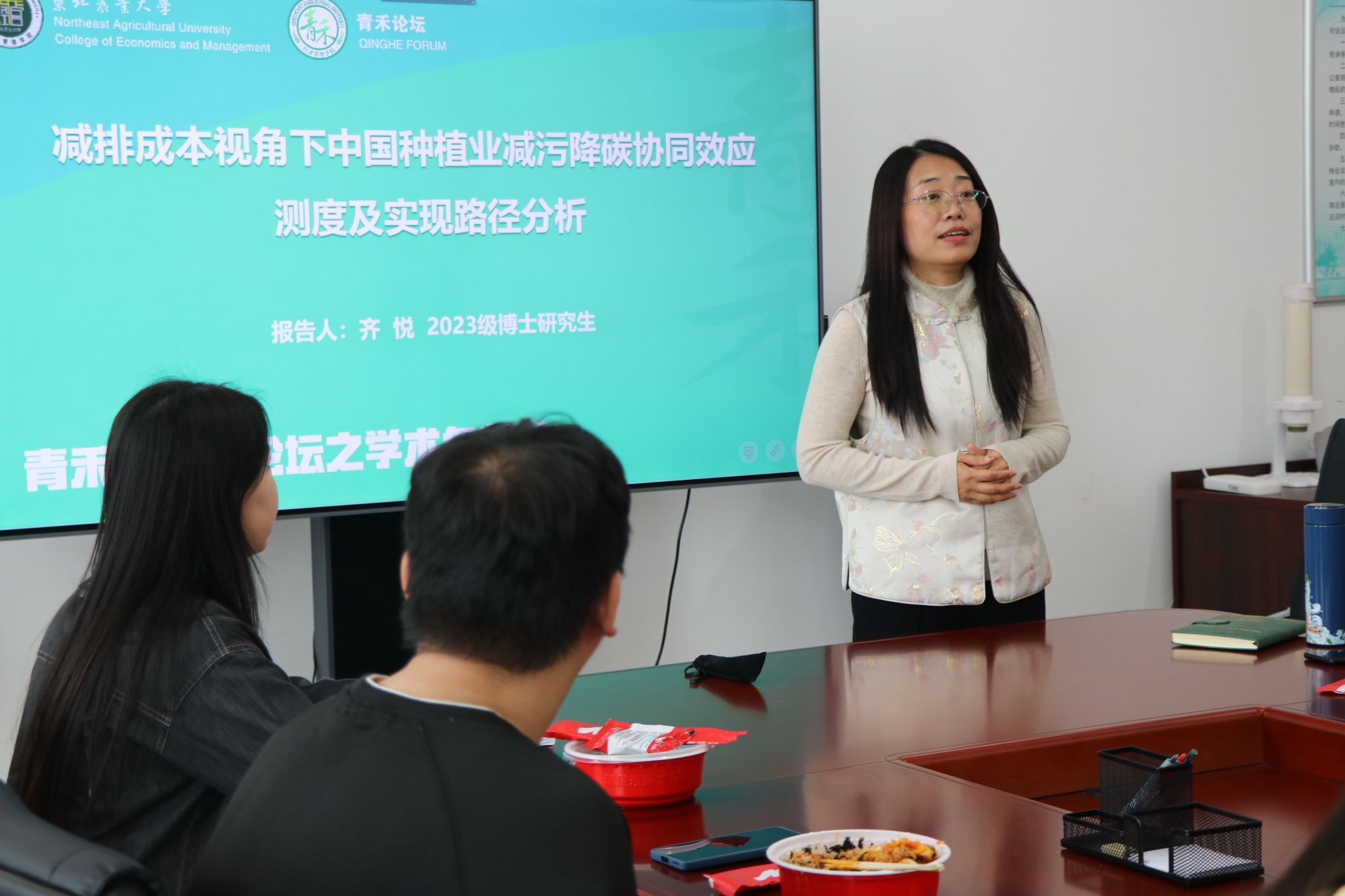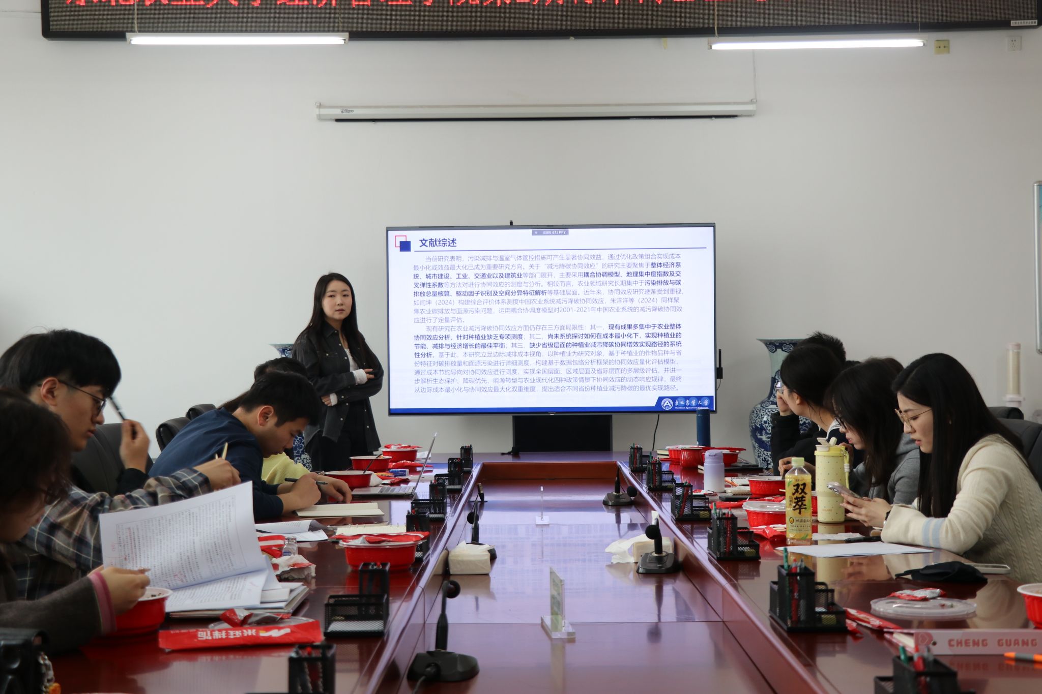 为深入贯彻落实学校第四次党代会精神,提升研究生育人质量,4月2日,经济管理学院举办第二期青禾博士生论坛之学术午餐会。本次午餐会邀请学院2023级博士研究生齐悦以《减排成本视角下中国种植业减污降碳协同效应测度及实现路径分析》为题进行学术分享。经济管理学院院长余志刚、副院长王洋,农经系教师张梅、许佳彬及20余位研究生参会研讨。活动由王洋主持。