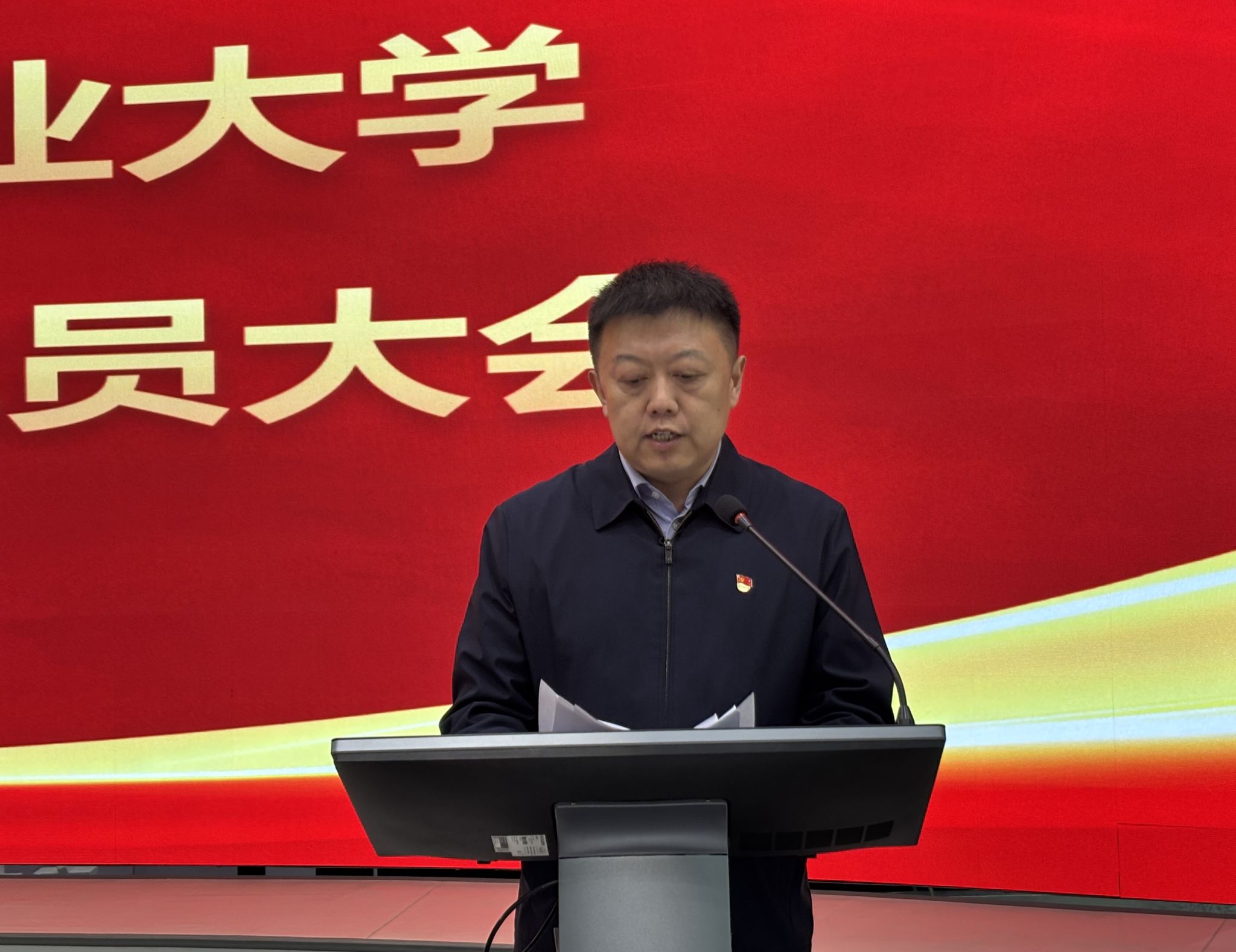 学院正处级辅导员宫建伟在会上宣读《中国共产党东北农业大学公共管理与法学院党员大会关于上届委员会报告的决议(草案)》。