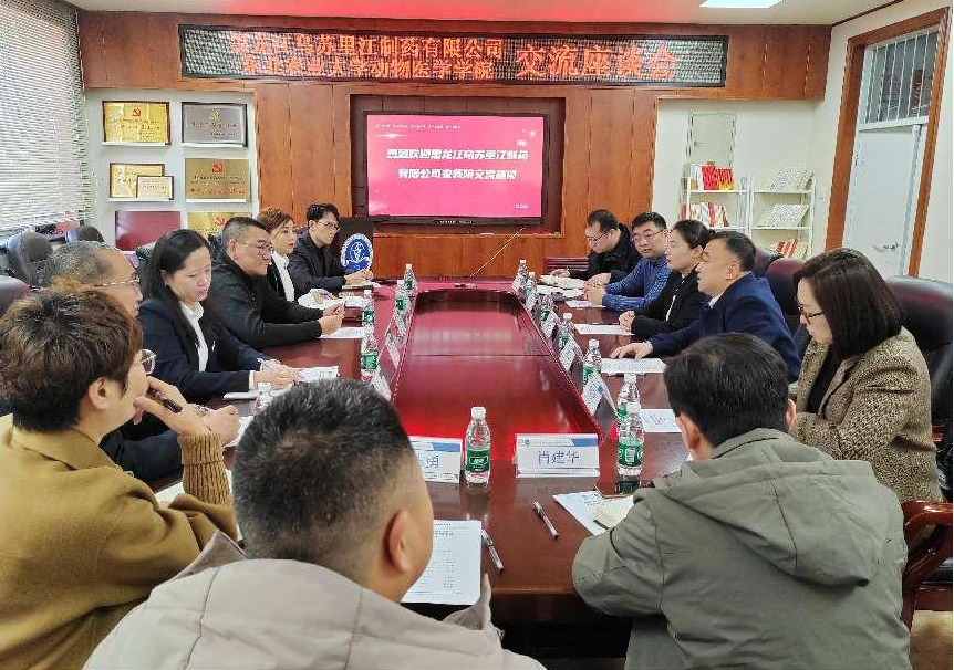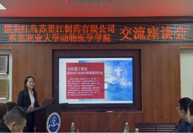 座谈会上,张子威对黑龙江乌苏里江制药有限公司一行的到来表示热烈欢迎。他表示,公司致力于医药研发和生产,为推动黑龙江省医药产业的发展做出了重要贡献,动物医学学院在科研创新、人才培养、成果转化等方面独具优势,希望通过此次交流,为双方更加深入的合作带来新的发展机遇。
