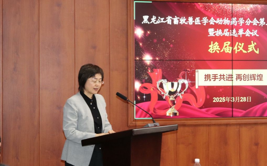 在此次换届选举中,学院动物药学学科带头人李艳华教授当选为第三届理事会理事长。会上,李艳华详细介绍了团队在动物药学领域的研究方向与成果,全面阐述了学校、学院在教学、科研、社会服务等方面的情况。她强调,动物药学分会活动,将充分发挥我省在动物健康养殖、中兽药资源等方面的特色优势。分会通过整合高校、科研院所与企业的资源,加强动物药物研发、耐药性防控、新型给药系统等关键技术攻关,推动学科向精准化、智能化方向发展,助力解决动物药学“卡脖子”难题,为我省畜牧业绿色发展提供科技支撑。她表示,通过学术会议、技术培训、校企联合培养等方式,打造一支高素质的动物药学人才队伍,让更多有志之士投身学科建设,共同谱写龙江动物药学发展的新篇章。