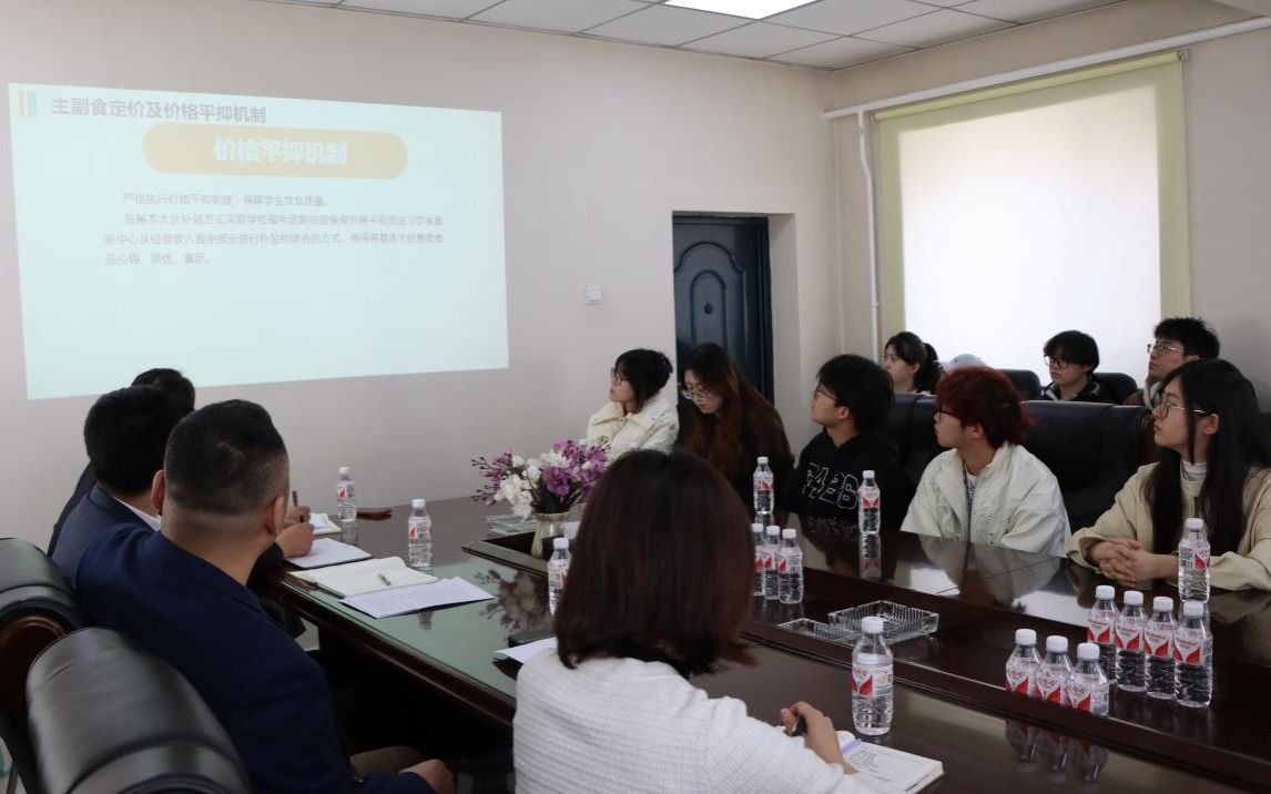会上,彭金柱向长期以来关注并支持学生食堂发展的伙食共建委员会的学生们表达诚挚的感谢。他强调,此次座谈会旨在搭建学生与饮食中心的沟通桥梁,畅通学生意见征集渠道,及时掌握学生关切问题,提高学校饮食服务质量,提升学生的满意度。饮食服务中心姚旭通过数据分析和流程演示,系统介绍了我校餐饮服务架构、成本核算体系及意见反馈机制等食堂管理运营模式。