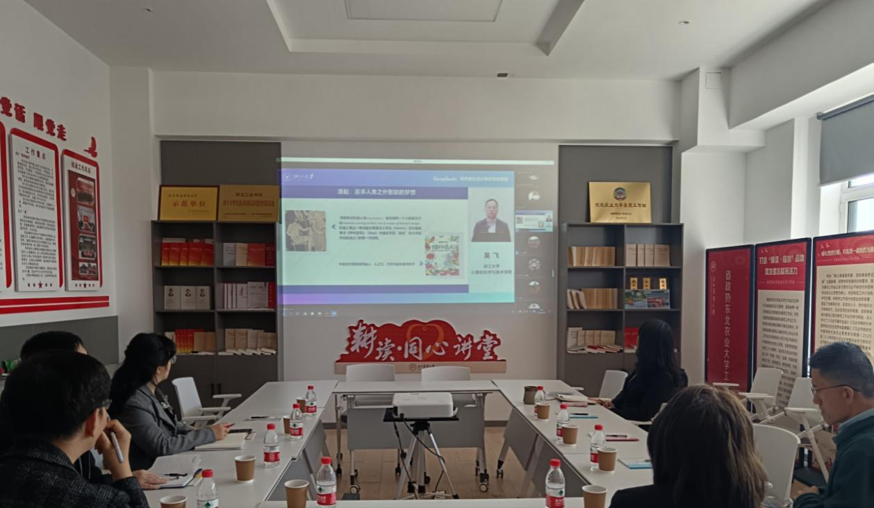 活动邀请浙江大学人工智能研究所所长吴飞教授作题为 “DeepSeek:迈向全社会分享的普遍智能” 线上辅导报告。报告中,吴飞深入浅出地介绍了 DeepSeek 这一前沿人工智能技术的发展现状、核心技术原理以及其在全社会实现普遍智能分享的愿景和路径。我校党外知识分子和统战干部们认真聆听报告,并对报告中提出的新观点和新理念进行深入思考。