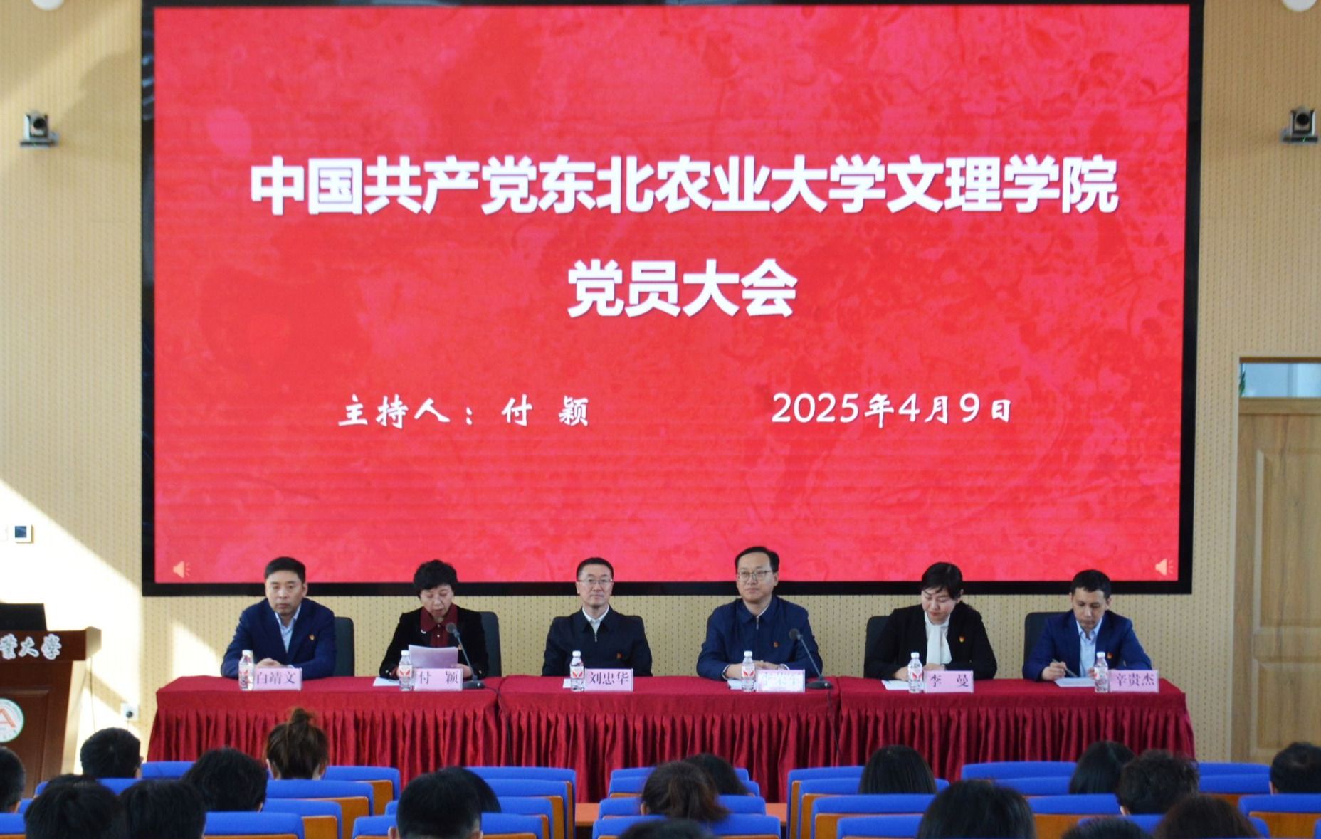 4月9日,中共东北农业大学文理学院党员大会在庄严的国歌声中隆重召开。我校副校长刘忠华,学院全体师生党员代表参加会议。大会由学院院长付颖主持。