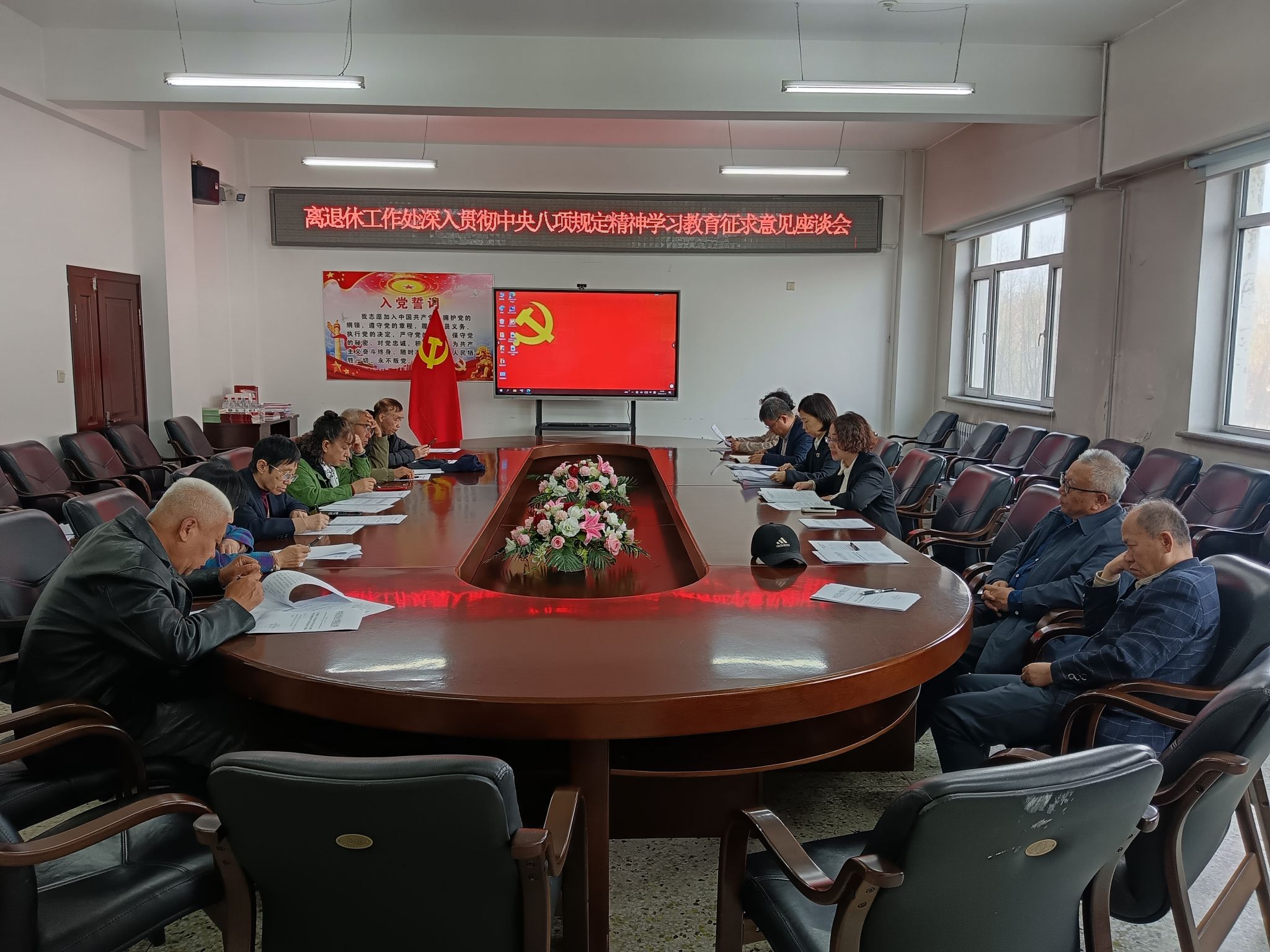 离退休工作处领导班子召开了深入贯彻中央八项规定精神学习教育征求意见座谈会,并现场发放征求意见问卷。与会老同志围绕如何更好地贯彻落实中央八项规定精神、加强作风建设、做好离退休服务工作等主题进行了深入交流,并提出了意见和建议。