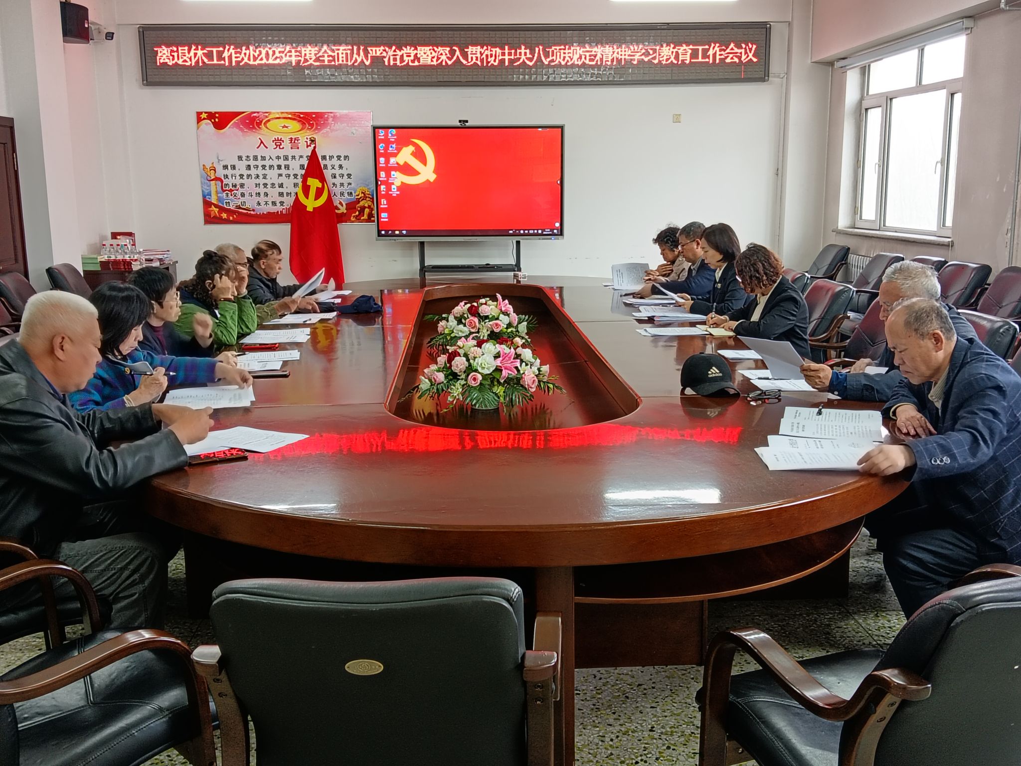 离退休工作处副处长孙喜娟传达学习学校2025年度全面从严治党工作会议暨领导干部警示教育会议精神,并对离退休工作处2025年全面从严治党重点工作进行部署。