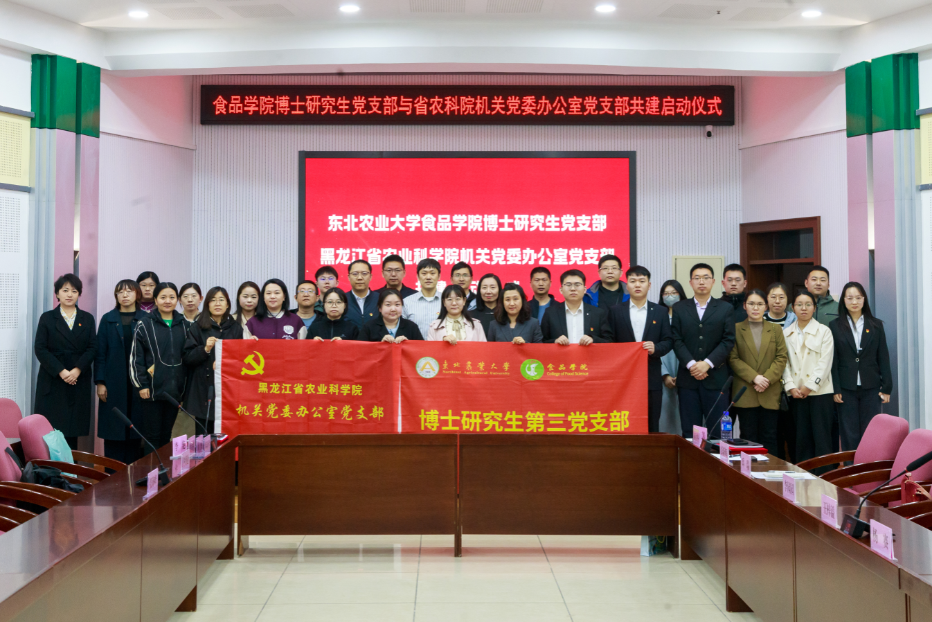 活动同期还举办了食品学院博士研究生党支部与黑龙江省农业科学院机关党委办公室党支部联学共建启动仪式。崔丽、李佳峰代表双方签署共建协议,并就进一步深入开展党支部建设达成共识,双方将以党支部共建为纽带,为协同育人与科研创新注入强劲动能。