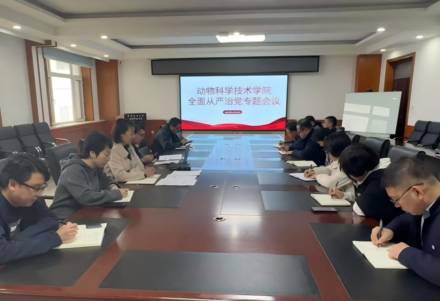 为扎实开展深入贯彻中央八项规定精神学习教育,全面推进从严治党工作走深走实,4月18日,动物科学技术学院召开2025年全面从严治党暨安全工作专题会议,学院领导班子、各系主任及党支部书记参加会议。会议由学院党委书记徐光君主持。