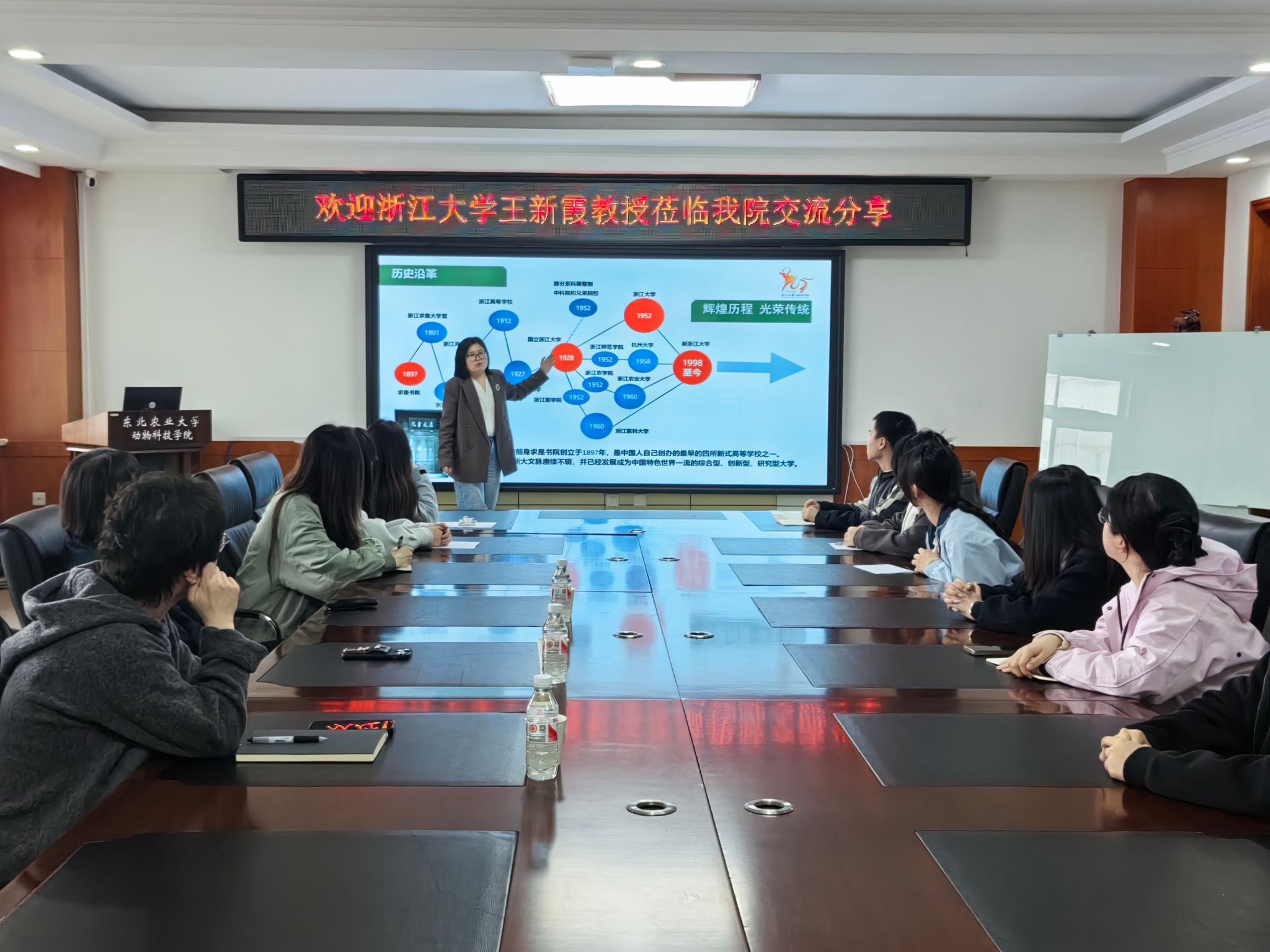 为强化动物科学领域人才联合培养,拓宽学生学术视野与深造渠道,扎实推动2026届毕业生就业工作,4月19日下午,动物科学技术学院邀请浙江大学求是特聘教授、博士生导师王新霞到学院开展硕士研究生招生宣讲。动物科学技术学院行政负责人董娜、党委副书记焦阳及2026届学生参加会议。