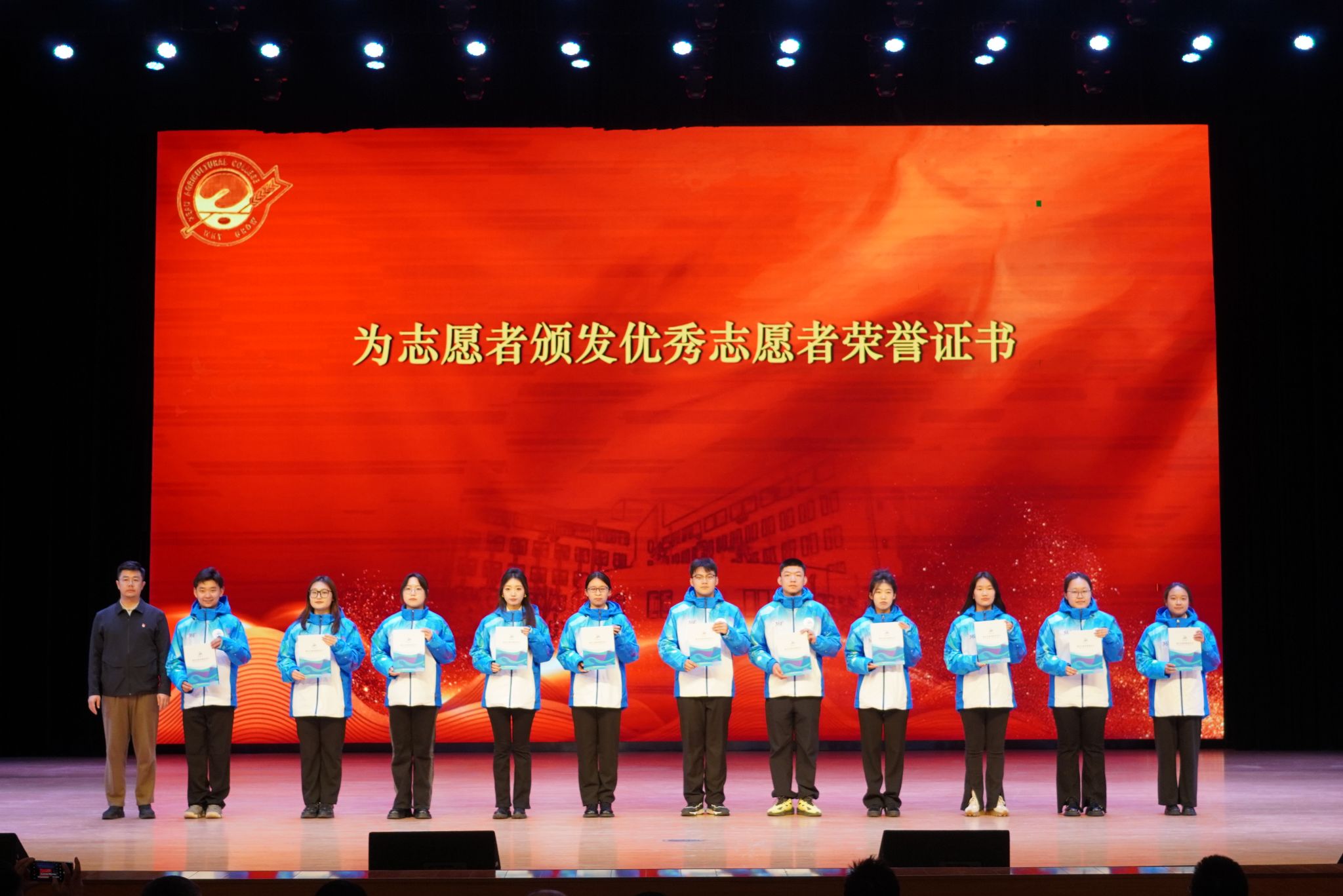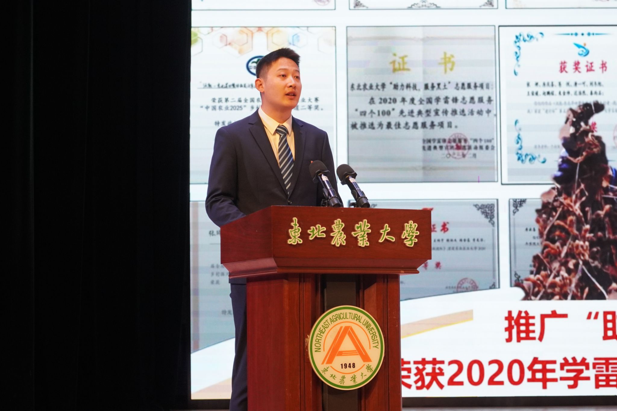 吕嘉昌宣读《第七届中国青年志愿服务项目大赛获国家级铜奖项目——性而有你,以身作则》《农学院关于表彰哈尔滨亚洲冬季运动会优秀志愿者的决定》,并为获奖学生颁奖。