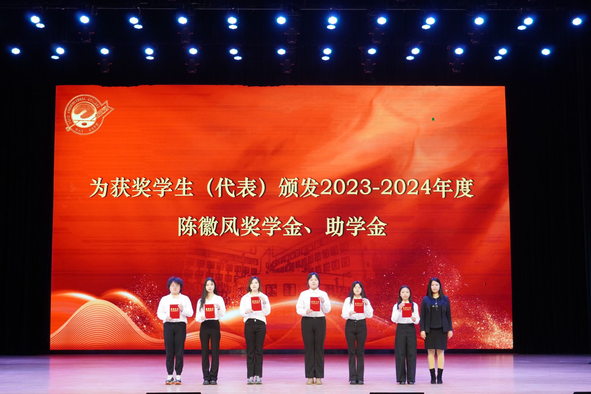 宋跃芬宣读《关于表彰2023—2024学年度陈徽凤奖学金、助学金的决定》《关于表彰2023—2024学年度普兰农业五育学习与发展奖学金的决定》,并为陈徽凤奖学金、助学金获奖学生颁奖。