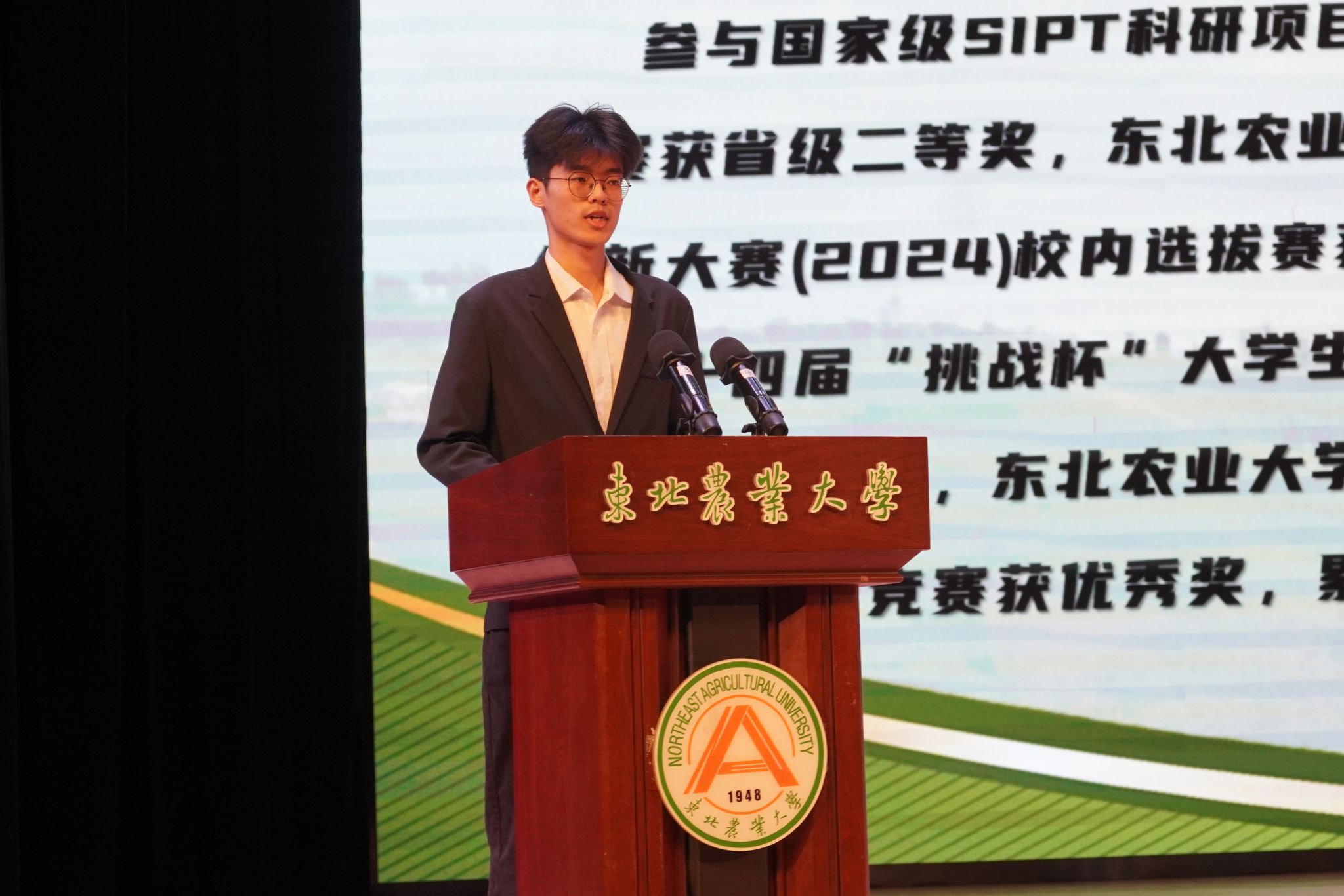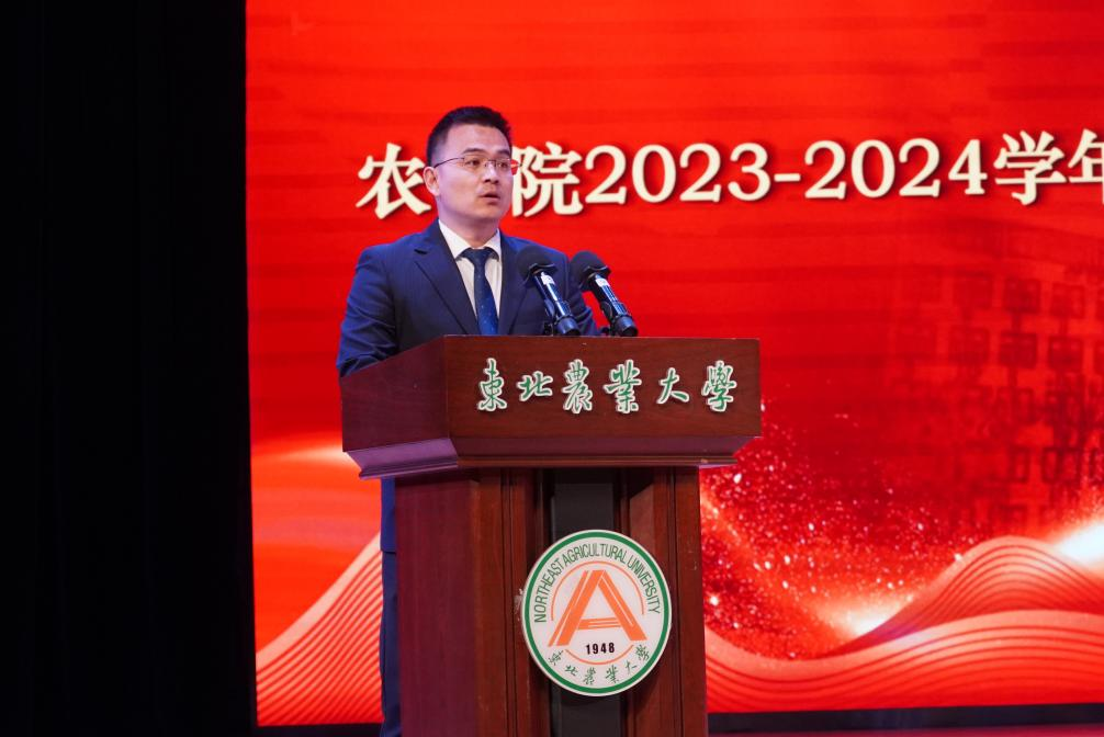 农学院院长辛大伟向全体获得荣誉的师生表示热烈的祝贺和美好的祝愿,并提出三点希望,一是不负过往,突破舒适圈;二是不负当下,深耕学习圈;三是不负未来,升级成长圈。将个人理想融入国家农业事业,在实践中增长才干。大学是追梦的新起点,希望全体同学以榜样为镜,追求卓越,书写青春华章。