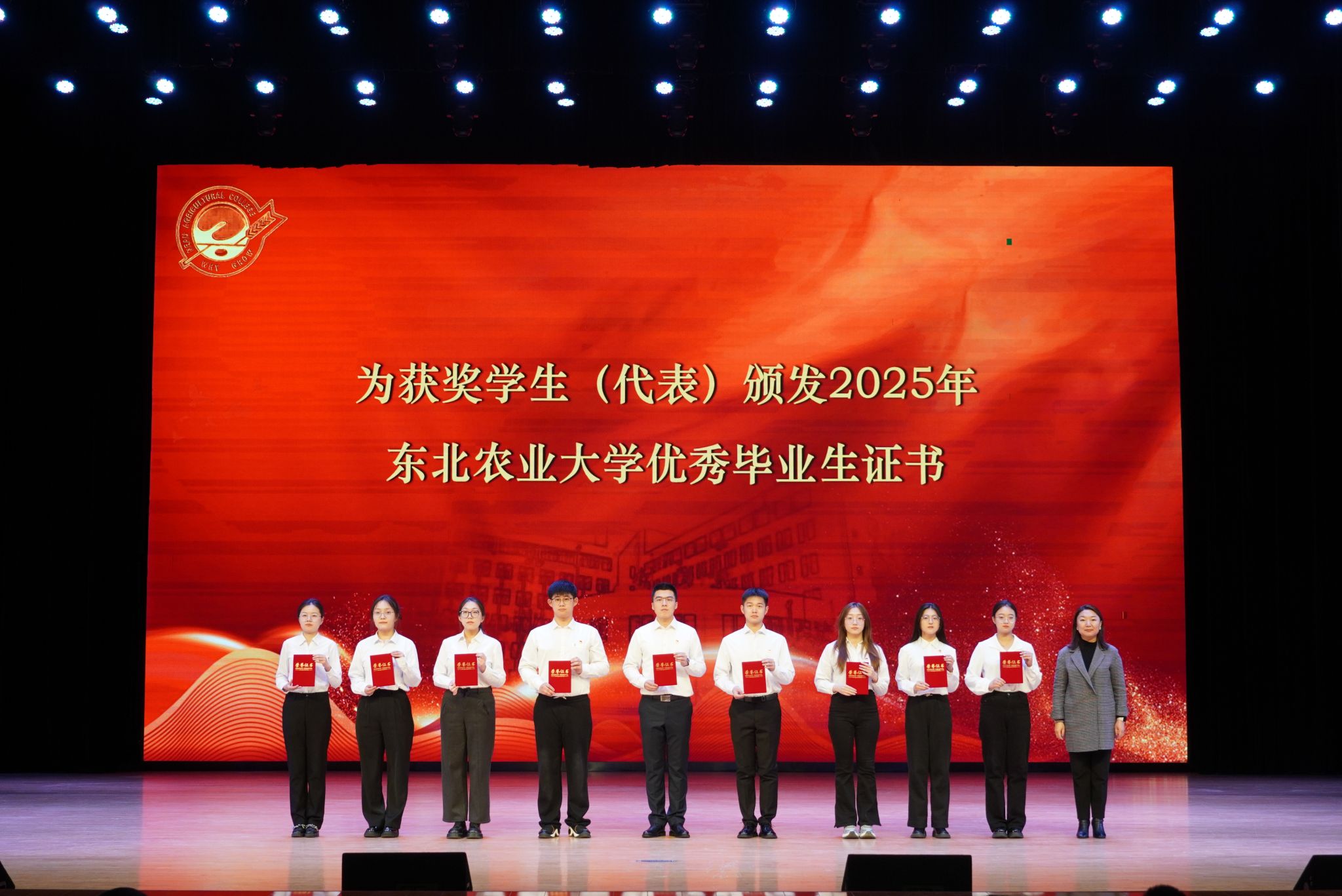农学院正处级辅导员张华英宣读《关于表彰2025年东北农业大学农学院优秀毕业生的决定》,并为获奖学生颁奖。