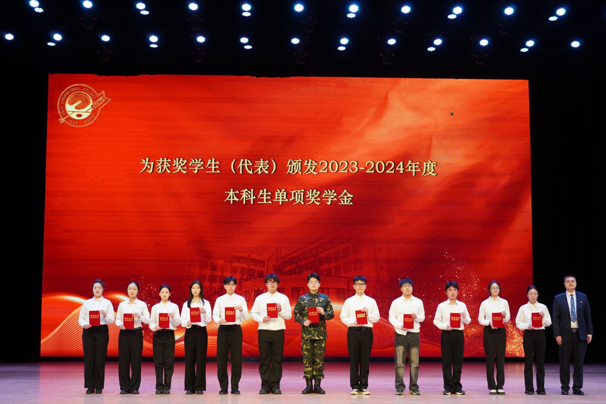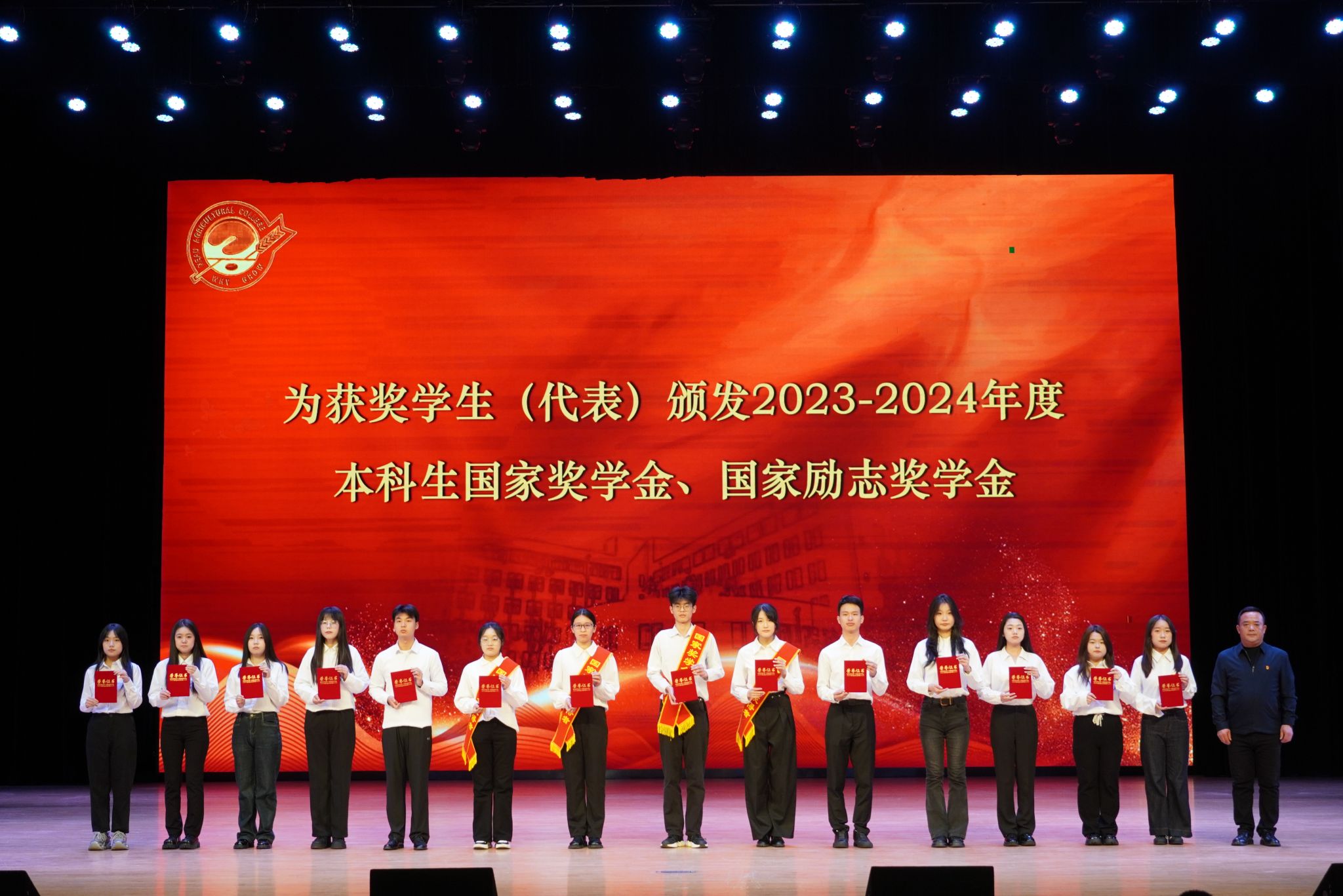 汪志君宣读《关于颁发2023—2024学年度本科生国家奖学金、国家励志奖学金的决定》,并为获奖学生颁奖。