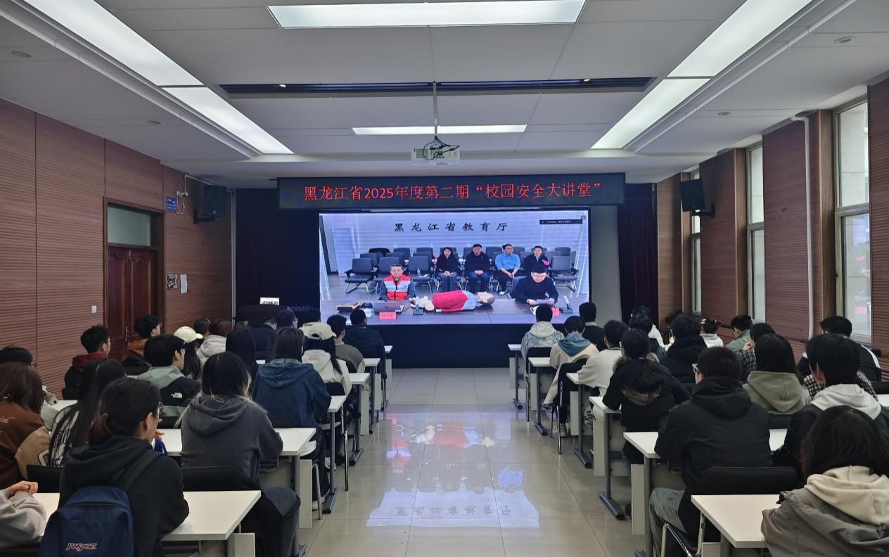 为深入开展“爱校如家、当好主人翁”活动,进一步提升师生应急处突与协同救护能力,为全体学生创造安全、和谐的学习生活环境,4月25日,我校在音乐厅106室组织集中观看黑龙江省2025年度第二期“校园安全大讲堂”。学生工作部、保卫处负责同志,辅导员及学生代表80余人参加活动。