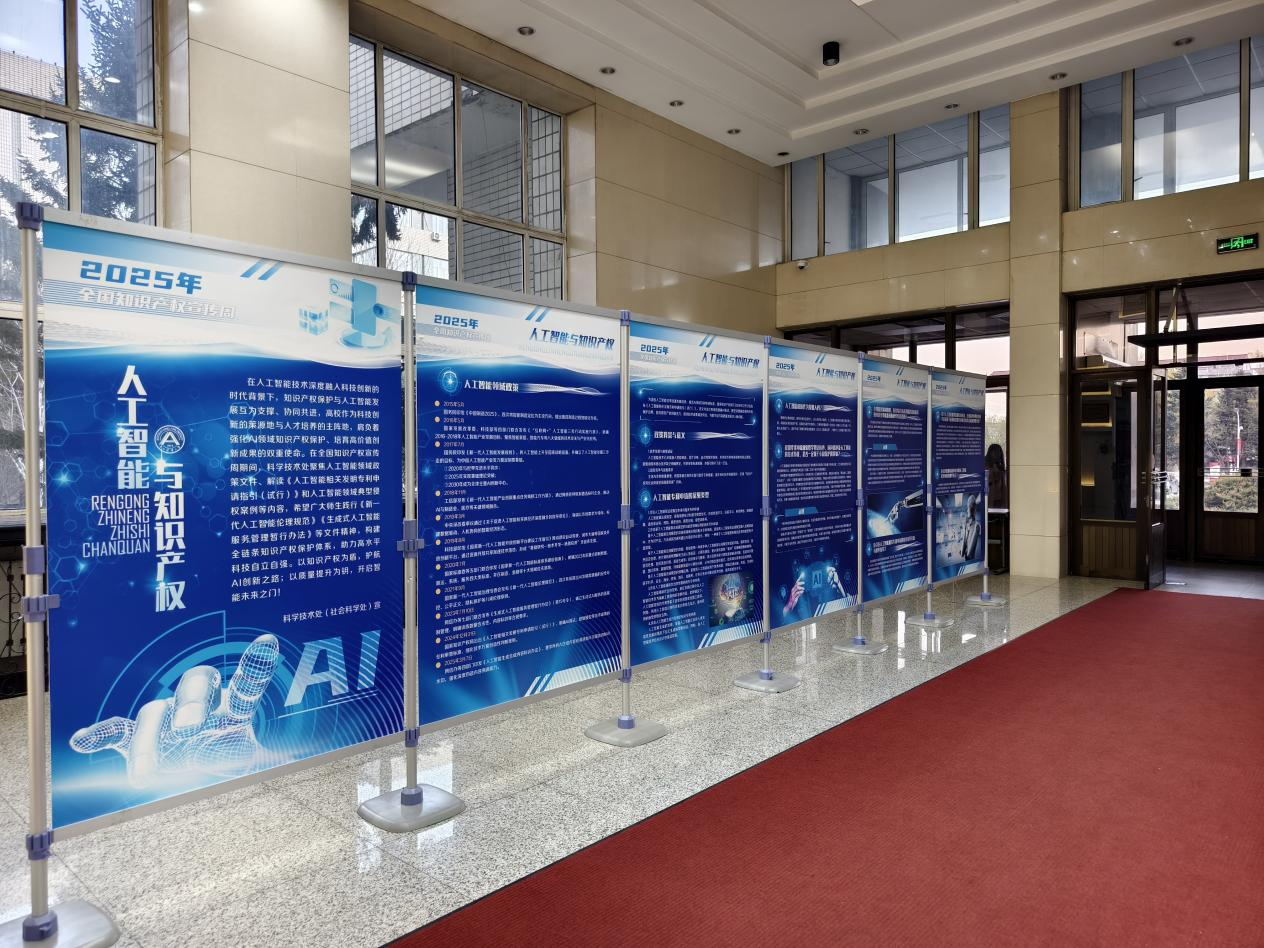 活动期间,科学技术处(社会科学处)通过在主楼大厅两侧布置宣传展板的方式集中展示了人工智能领域的政策文件,详细解读了《人工智能相关发明专利申请指引(试行)》以及人工智能领域的典型侵权案例。活动帮助师生掌握申请人工智能领域专利的相关要求和人工智能领域相关文件精神,吸引了众多师生驻足学习。