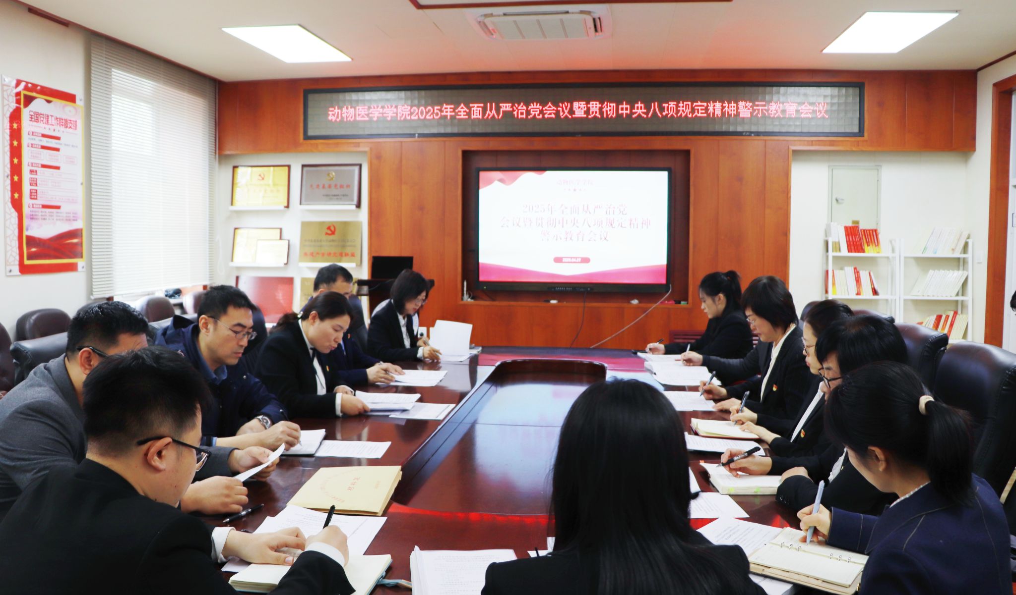 4月27日下午,动物医学学院在临床楼229会议室召开2025年全面从严治党会议暨贯彻中央八项规定精神警示教育会。会议深入学习习近平总书记关于全面从严治党的重要论述精神,准确领会中央八项规定及其实施细则精神的核心要义、实践要求,认真贯彻落实省委和学校党委相关会议部署要求。学院领导班子成员、党委委员、纪委委员、全体党支部书记参加会议。会议由学院党委书记张春燕主持。