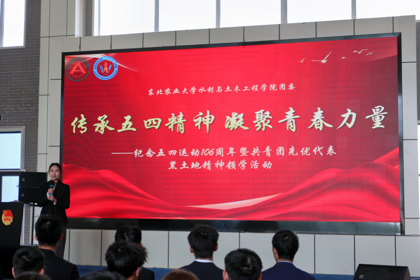 为纪念五四运动106周年,引导水利青年传承五四精神,凝聚奋进力量,水利与土木工程学院积极响应学校党代会实施新时代立德树人工程的工作要求,立足学校扎根黑土,强农兴农的使命任务,于五四青年节来临之际,面向学院新发展团员开展“传承五四精神 凝聚青春力量”——纪念五四运动106周年暨黑土地精神领学主题团课。