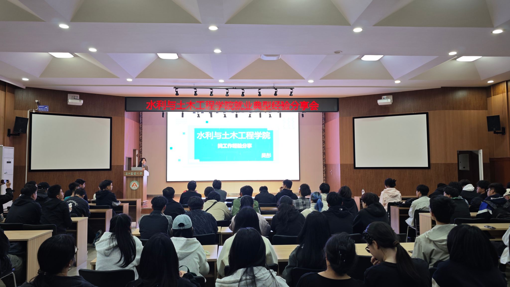 4月29日,水利与土木工程学院在音乐厅109举办“灯塔计划”就业典型经验分享会,会议邀请学院两位2025届就业代表为即将步入毕业年级的2026届学生提供了经验指导。学院2026届毕业生辅导员以及150余名学生参会。