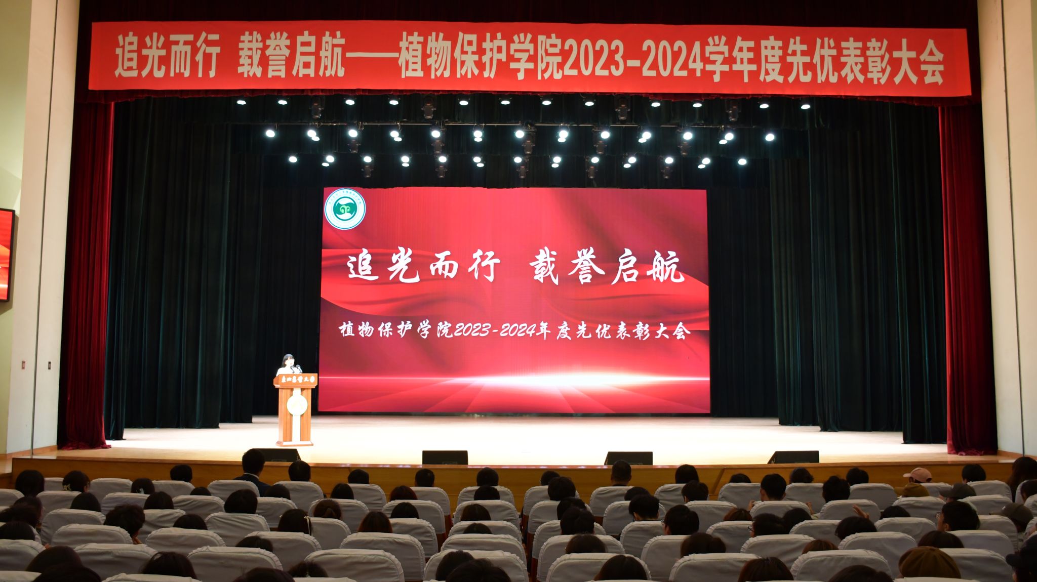 为落实立德树人根本任务,进一步在全体学生中弘扬比学赶超、奋勇争先的良好氛围。植物保护学院于5月9日在音乐厅召开“追光而行,载誉启航”植物保护学院2023-2024学年度先优表彰大会。