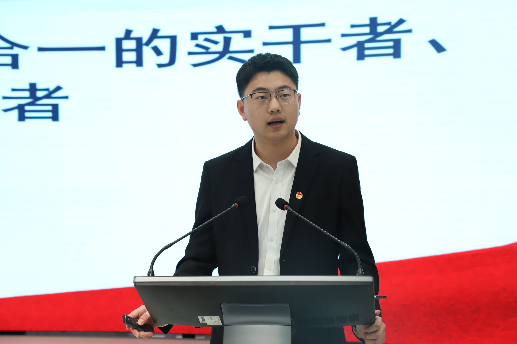 校青年五四奖章获得者孙子烨和社会实践积极分子崔朝轶,分别分享了各自的科研实践经历和追逐梦想的奋斗故事,激励新团员们坚定理想信念,勇于探索未知,在实践中不断成长。