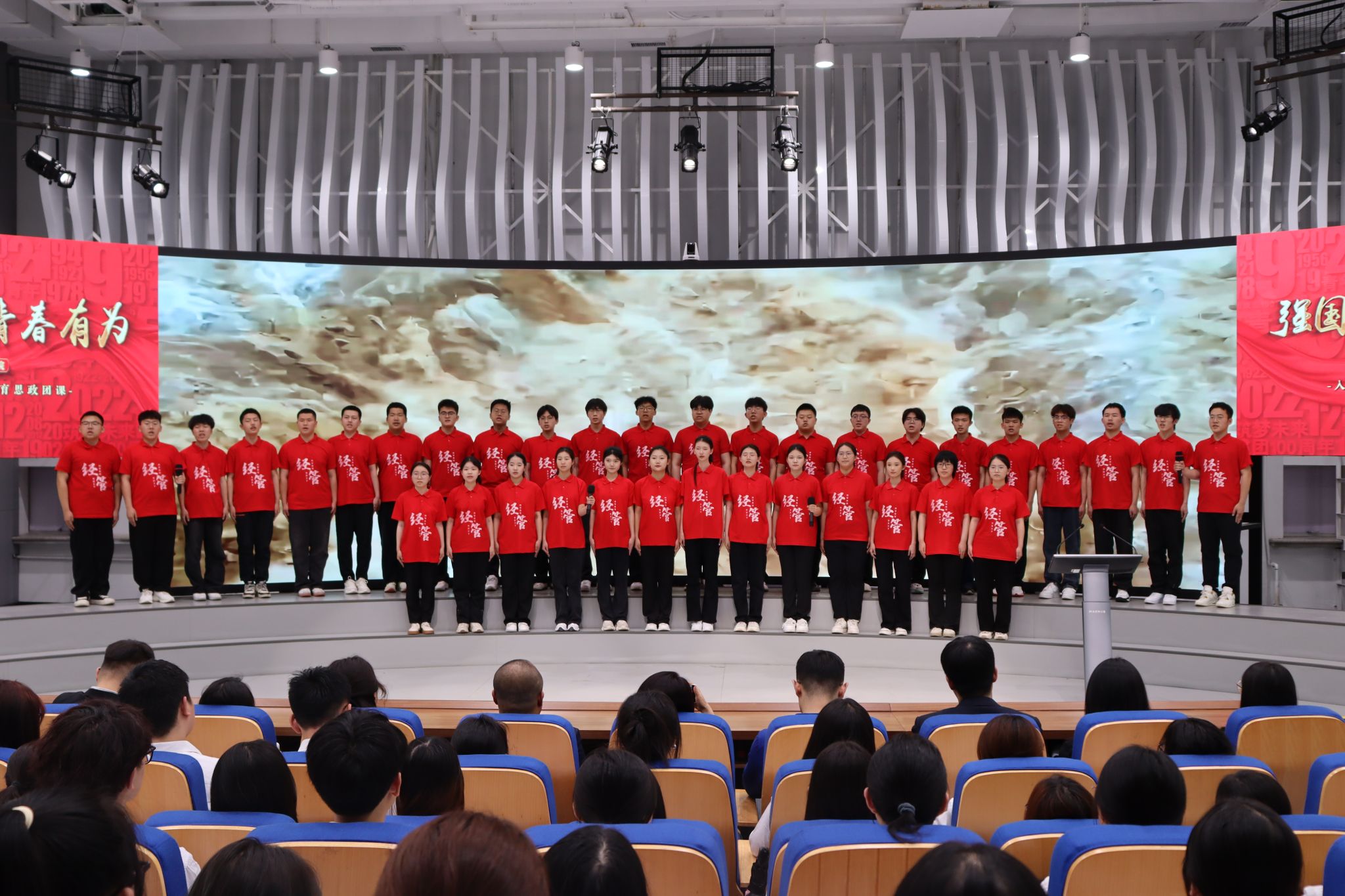 全体师生共唱《光荣啊,中国共青团》。经济管理学院“强国有我,青春有为”入团仪式暨美育思政团课在中国共产主义青年团团歌中落下帷幕。