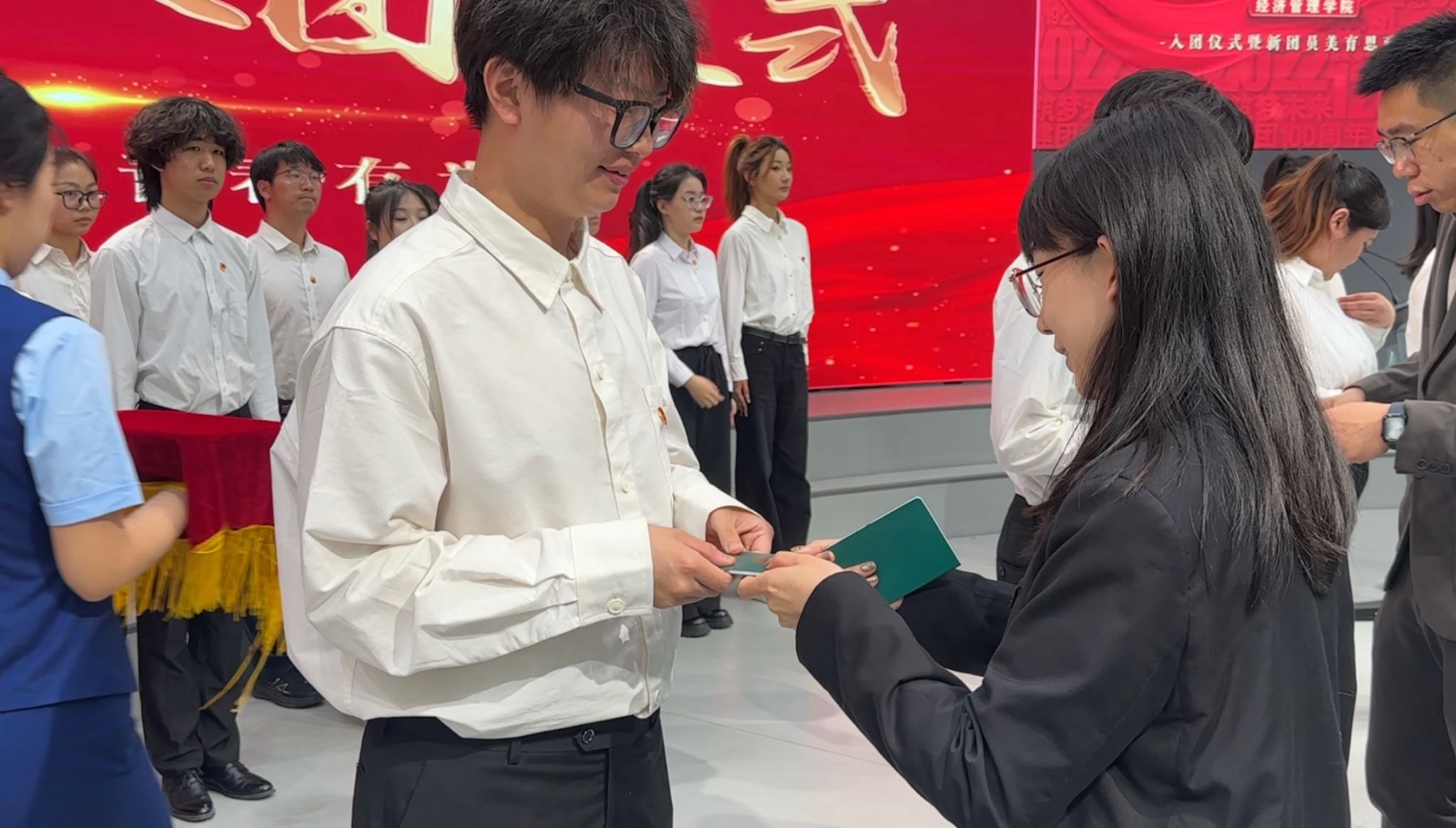 为弘扬五四精神,坚定理想信念,加强思想政治引领,扎实推进团员和青年主题教育,5月14日,经济管理学院举办“强国有我,青春有为”入团仪式暨美育思政团课。学院党委副书记高天琦、辅导员代表及全体新团员参加了本次仪式,仪式由学院团委书记陈曦主持。经济管理学院通过团课活动,引导学生们立鸿鹄志,将个人理想融入国家发展大局,以青春力量助力祖国建设,勇做担当民族复兴大任的时代新人。