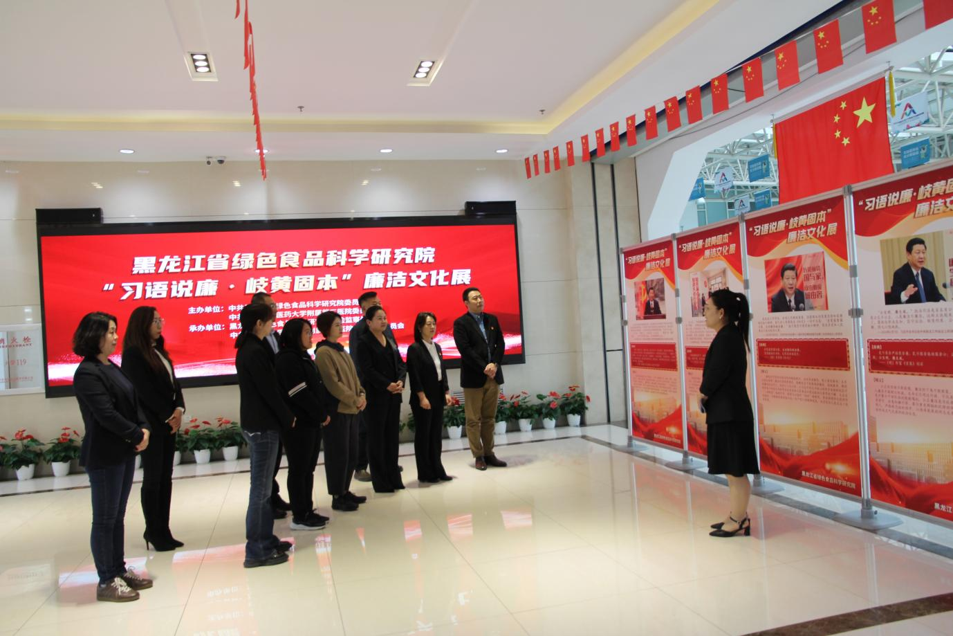 黑龙江中医药大学附属第三医院纪委书记张敏,省绿研院党委副书记杨玉琢、副院长兼纪委书记杨文敏等处级干部参观了两家单位纪委联合举办的“习语说廉・岐黄固本”廉洁文化展。展览聚焦习近平总书记重要讲话重要指示精神及传统医学文化精髓,通过生动图片与详实解读,搭建起“岐黄之术”与“廉政之道”交相辉映的智慧桥梁,汇聚廉洁教育与国粹经典同频共振的文化力量。