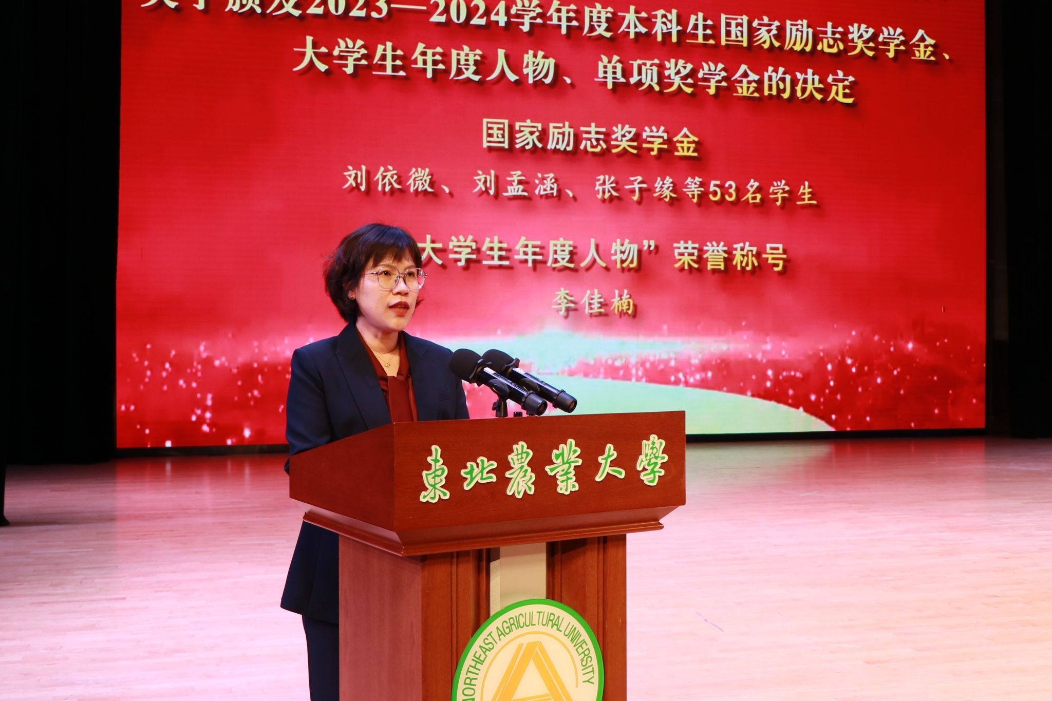 会上,学院党委书记施喜军,院长李良,正处级辅导员崔丽,副院长刘骞,副处级辅导员杨俊静、高鹏分别宣读了《关于颁发2023—2024学年度本科生国家奖学金的决定》《关于颁发2024年研究生国家奖学金的决定》《关于表彰奖励2023—2024学年度研究生先进班集体、优秀研究生、优秀研究生干部及省级以上优秀个人的决定》《关于表彰2024年在各级各类创新创业大赛中获奖学生的决定》《关于颁发2023—2024学年度本科生国家励志奖学金、大学生年度人物、单项奖学金的决定》《关于表彰2023—2024学年度大学生年度群体、本科生先进班集体、星级文明寝室的决定》。