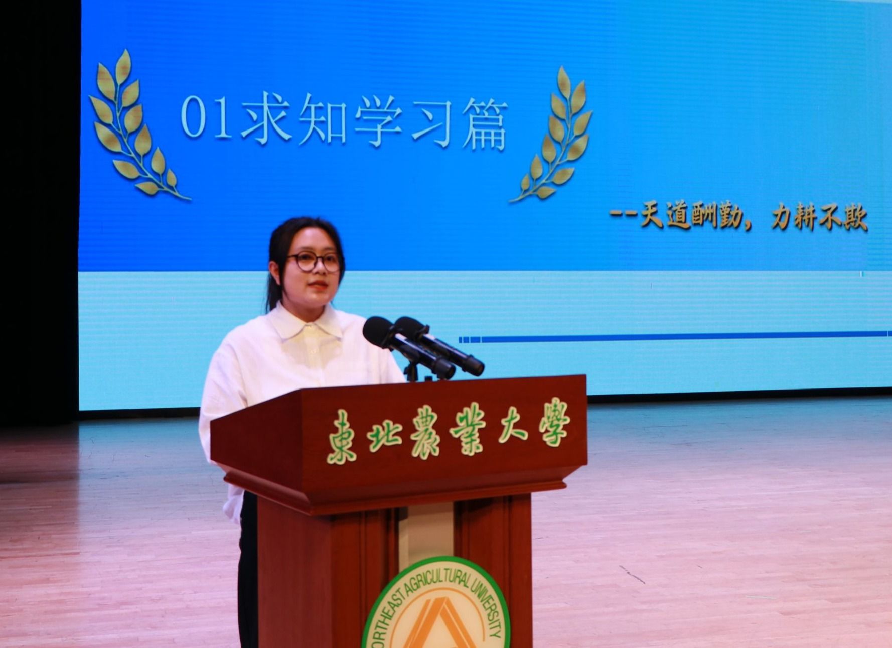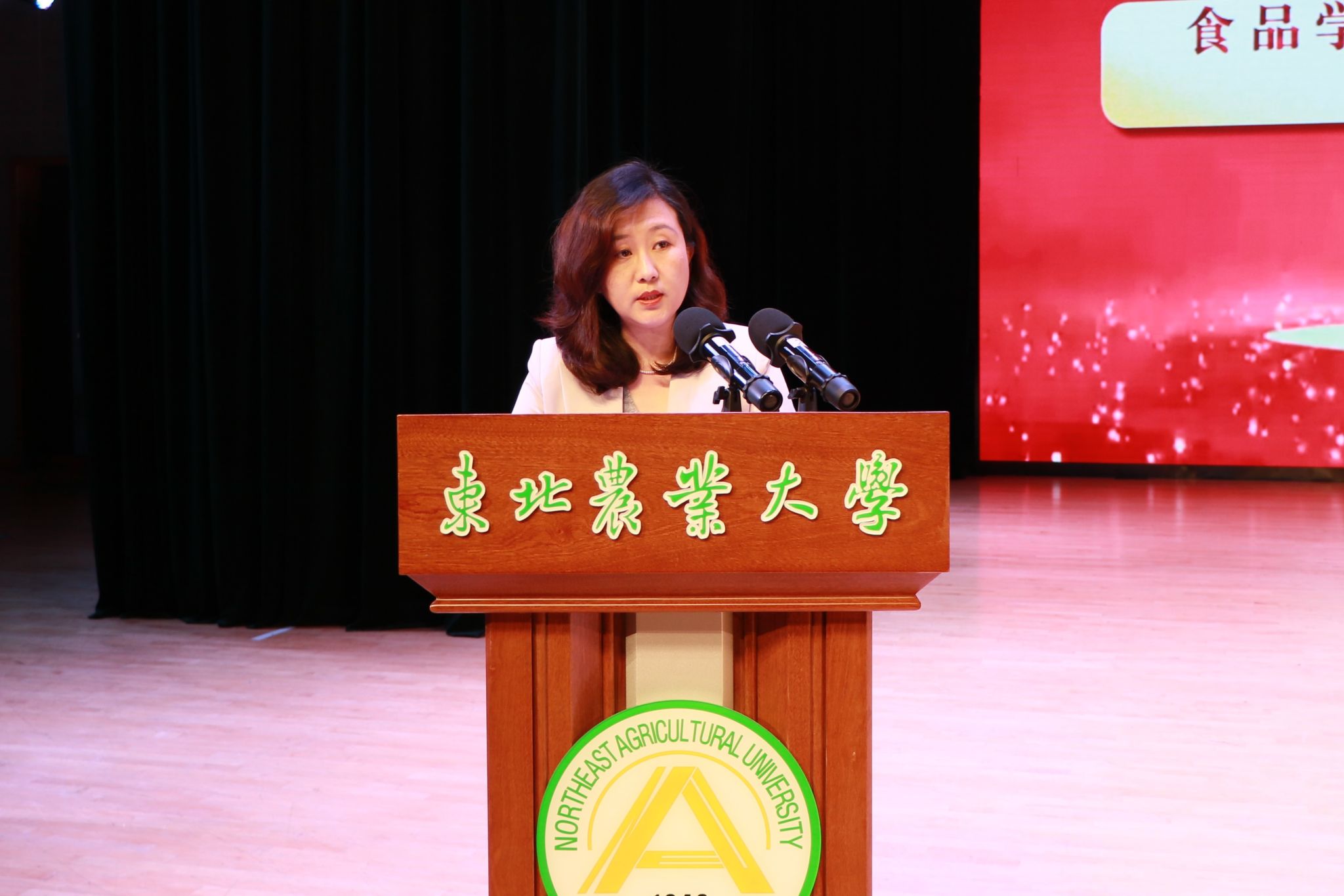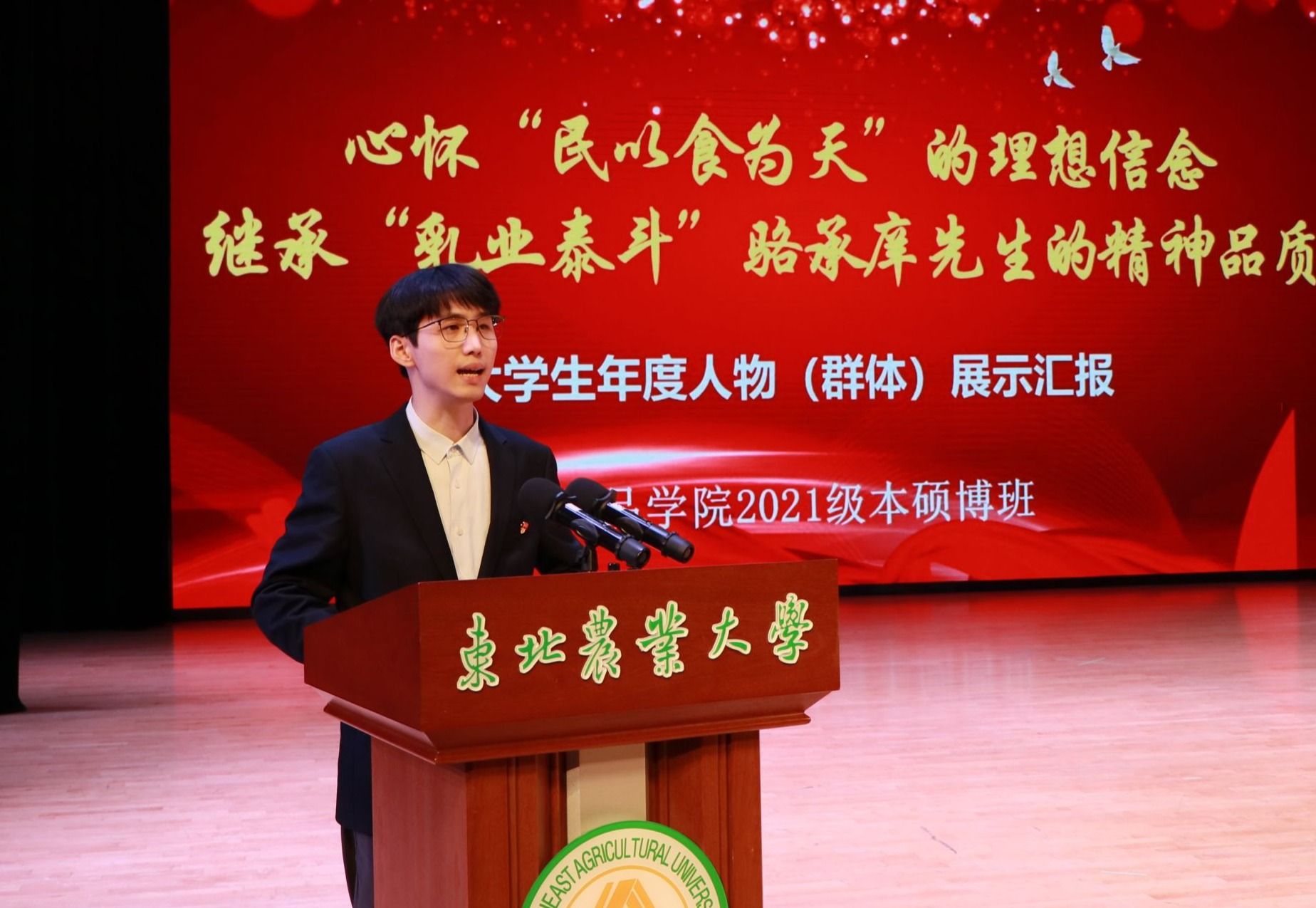 博士研究生国家奖学金获得者庞立冬、大学生年度人物获得者李佳楠、大学生年度群体代表耿仁义分别代表获奖学生和集体发言。他们表示,作为食品学子,要求知敏学、严于律己、追梦不止,要充分发挥专业优势,将个人理想融入国家发展方略,融入龙江振兴需求,融入学校学院建设,用实际行动诠释“何谓青年,青年何为”的时代担当。