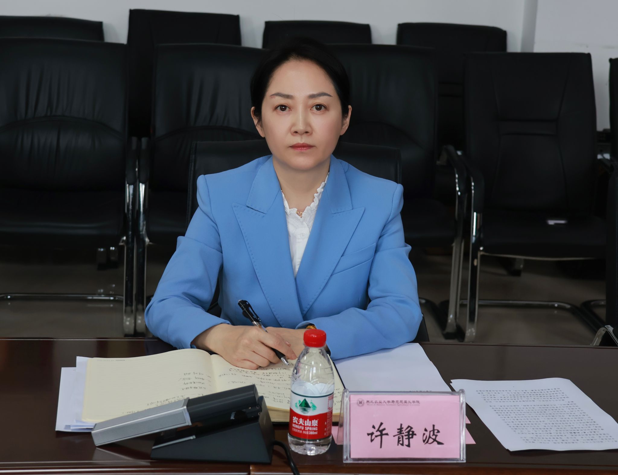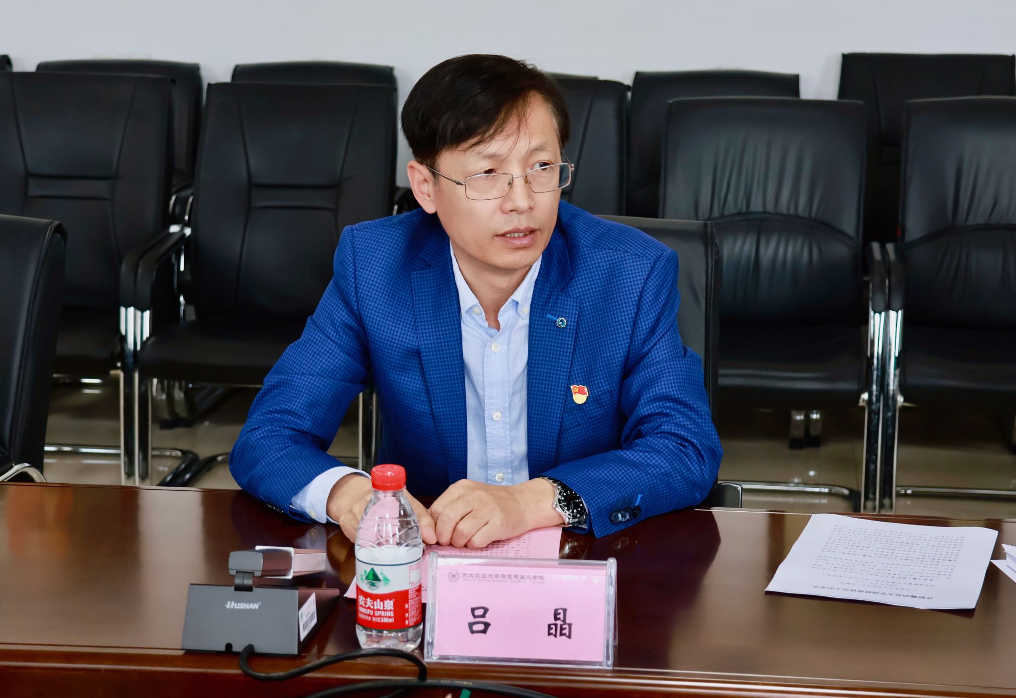 许静波介绍了学院人才梯队建设、专职思政课教师队伍和思政课建设情况。她表示,希望双方加强合作,建立常态化沟通机制,整合双方优质师资与教学资源,实现优势互补,共同提升思政课的针对性和吸引力,让思政教育真正入脑入心。