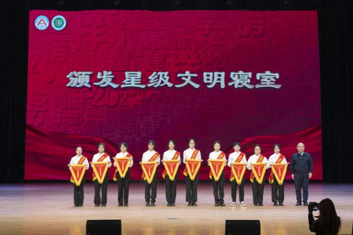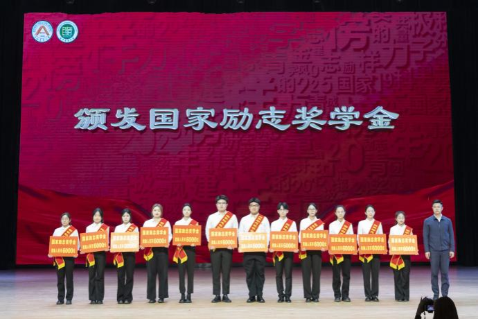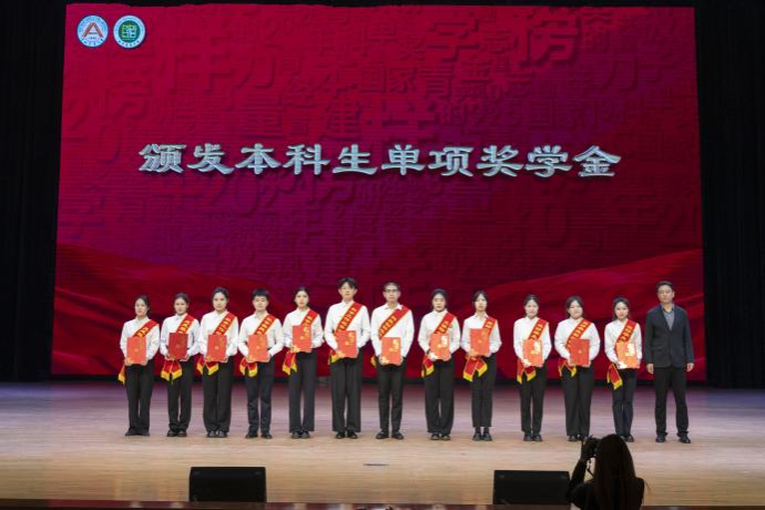 颁奖典礼在庄严的国歌声中拉开帷幕。高天琦全面总结了学院学风建设成效,并向全体老师的倾囊相授、职能部门的辛勤付出表示感谢。与会嘉宾观看了《赤子之心,耕梦沃土》情景剧,共同感受榜样的力量,并对学习成绩、社会工作、志愿服务、社会实践、文体特长等1207个先进个人和19个先进集体进行颁奖。