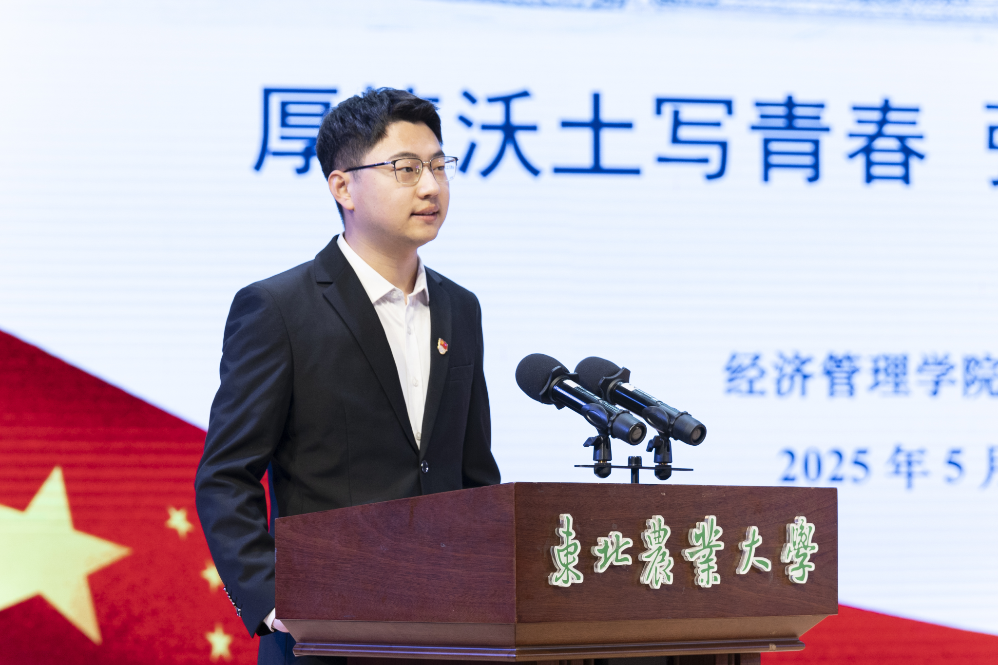 经济管理学院党委书记王洪亮对受表彰学生表示祝贺,向学生提出三点希望,一是立报国之志,强化使命担当,争做信仰坚定的奋斗者。勇敢肩负起时代赋予的重任,肩负起伟大征程上的青春使命,厚植家国情怀,涵养进取品格,努力在实现中华民族伟大复兴的生动实践中放飞青春梦想。二是扬青春之帆,练就过硬本领,争做劈波斩浪的追梦人。时刻把学习作为首要任务,让勤奋学习成为青春远航的动力,在学习中增长知识、锤炼品格,把锤炼过硬本领作为奋斗的重要基石,不断经风雨、见世面、壮筋骨、长才干。三是走奋进之路,勇于创新突破,做担当作为的实干家。沿着追逐梦想的脚步,有抢抓机遇、勇于探索创新的劲头,有不畏艰险、勇往直前的勇气,有矢志不移、攻坚克难的信心,把梦想的目标变为美好现实。