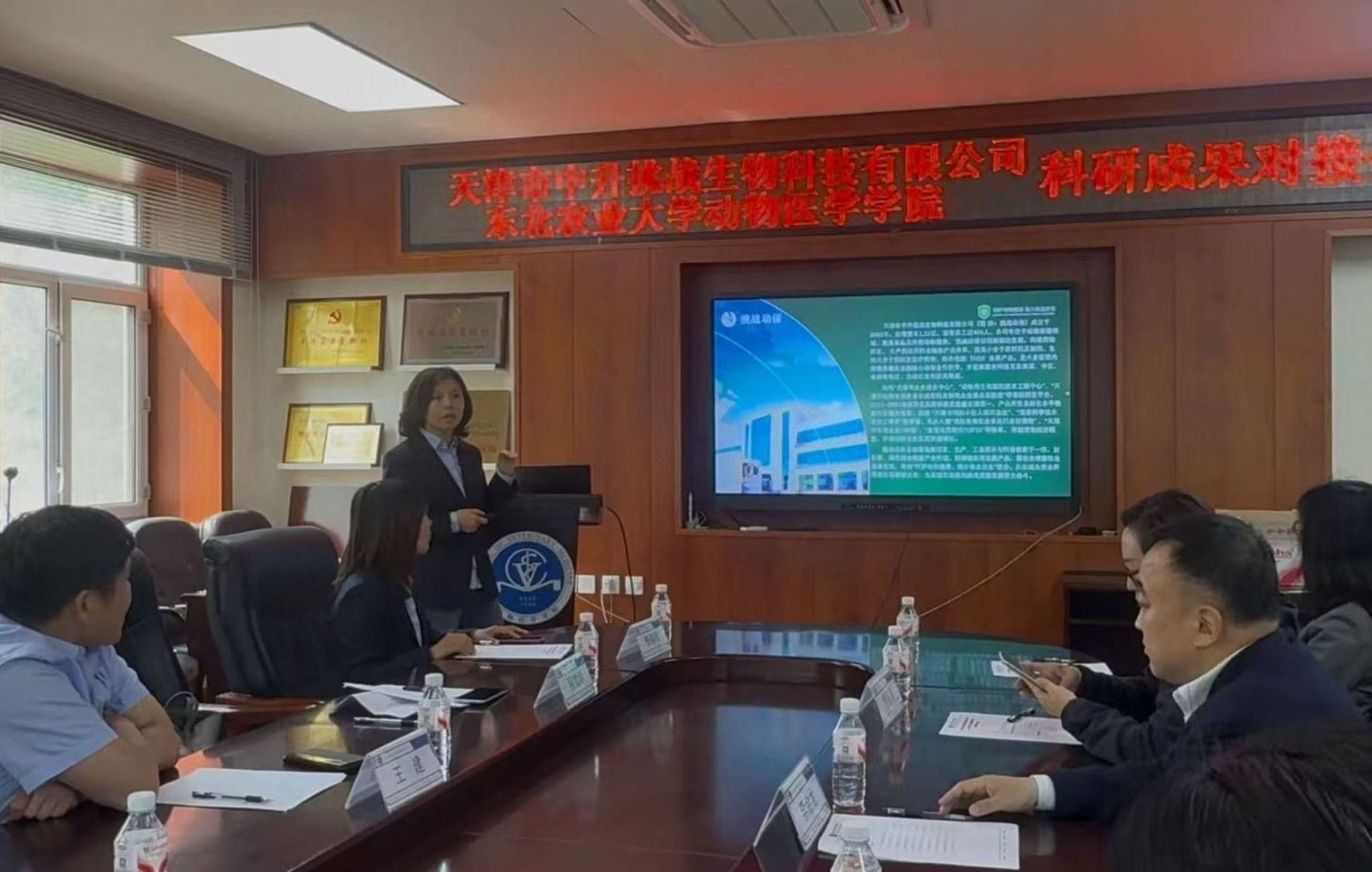 为深化产学研融合,推动科技成果转化,5月20日,天津市中升挑战生物科技有限公司董事长王建、副总经理兼研究院执行院长程雪娇、人力资源与品牌传播副总监逯永强、李丽琴一行四人到我校动物医学学院开展生物医药领域技术创新与成果转化交流对接。动物医学学院院长李金龙、副院长张子威、乔薪瑗以及学院教师代表参加活动。活动由李金龙主持。