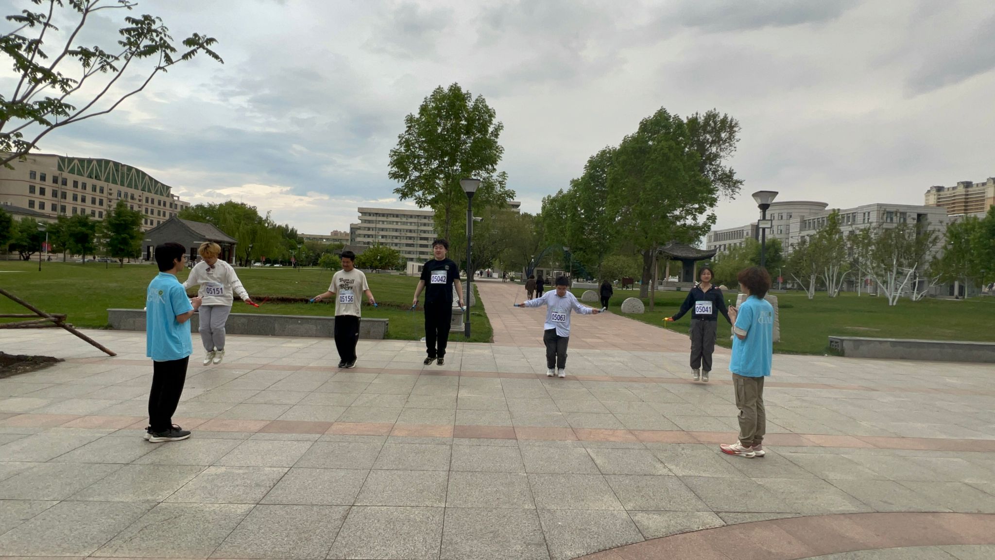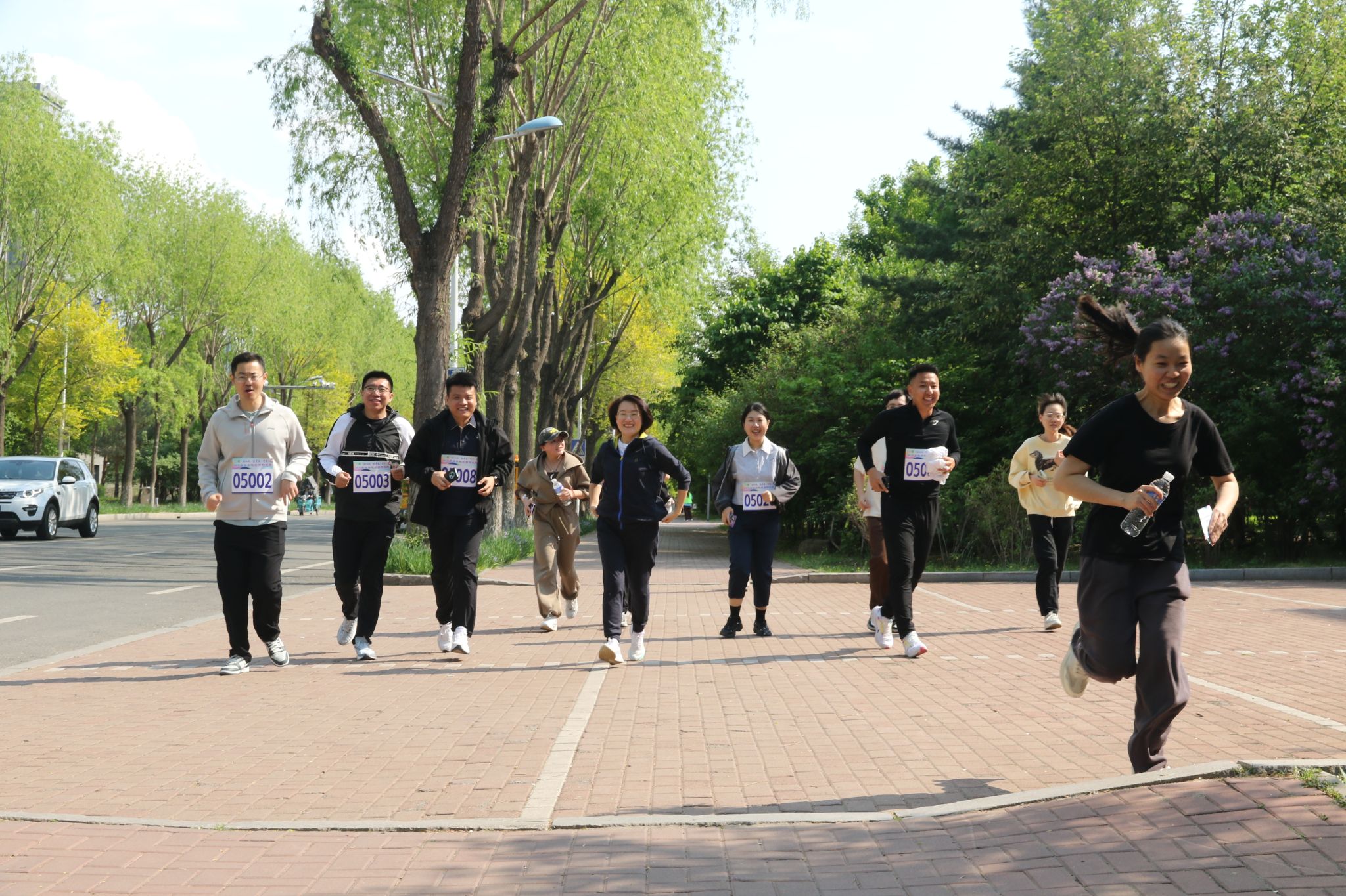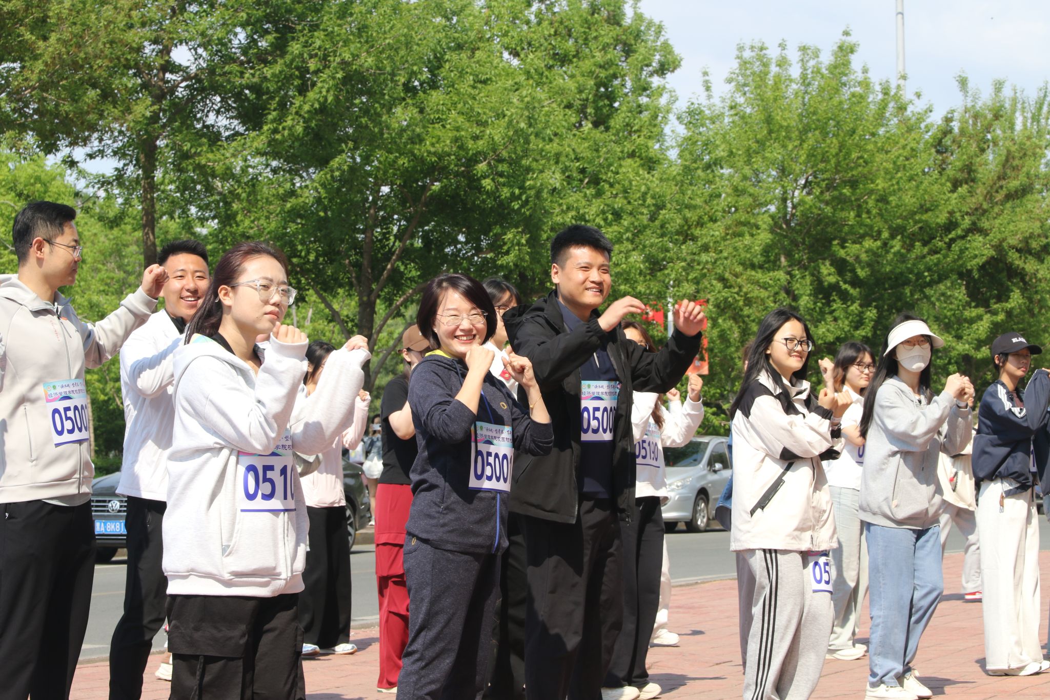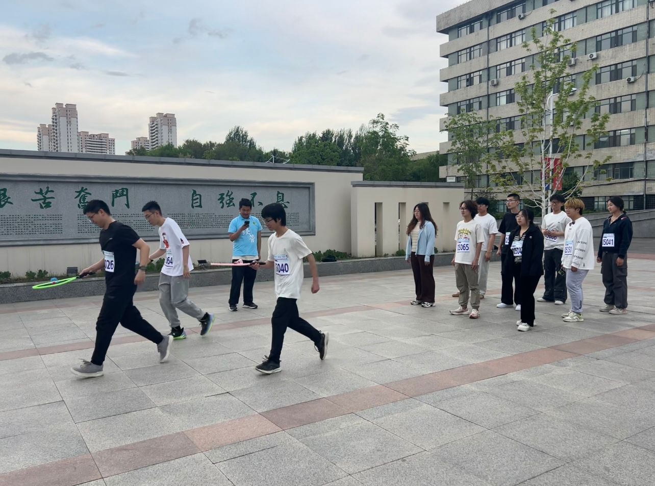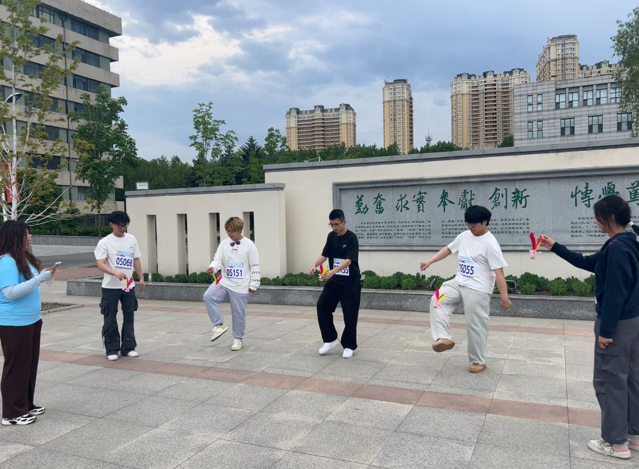 参赛师生每四人为一组,以成栋楼北广场为起点,沿途设置多个打卡点及补给点,活动设计兼具团队性、运动性及趣味性。为保障参赛师生的身体安全,由经验丰富的校健美操队员带领全体参赛师生进行赛前热身。