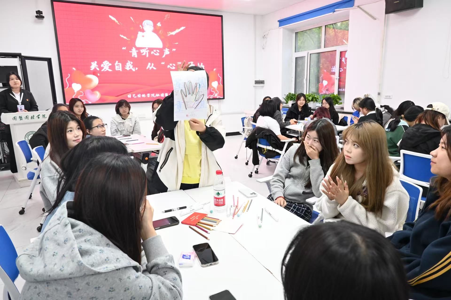 各学院结合专业优势和学生特点,以五育润心促进心理健康,打造独具特色的“一院一品”心理健康活动,为学生的心灵成长构筑起绚丽舞台。在知识讲座与观影感悟活动中,资源与环境学院聚焦学生骨干心理危机应对,马克思主义学院传授正面压力处理方法,动物医学学院、生命科学学院通过电影赏析滋养心灵。在团体辅导与主题班会活动中,文理学院关注新生寝室人际关系,工程学院开展减压赋能活动,经济管理学院助力学生科学对“焦”,引导积极心态。在开展趣味游戏与打卡体验活动时,植物保护学院设置多环节趣味体验与便签分享,经济管理学院推出心灵奇旅集章卡,水利与土木工程学院开展“放飞烦恼纸飞机”活动,农学院的“爱自己的100件小事”打卡,园艺园林学院的素拓盲盒与线上打卡活动,都让同学们沉浸其中。在创作竞赛与分享交流活动中,动物科学技术学院举办海报创作,电气与信息学院开展心灵故事征文,公共管理与法学院组织音乐故事分享,让学生尽情展现才华。在开展特色综合与创意活动中,食品学院结合专业制作蛋挞传递温暖,生命科学学院和国际文化教育学院开展心理剧、手工、寻宝等活动,艺术学院以传统文化为纽带,打造国风心理嘉年华,带来趣味互动与艺术体验。
